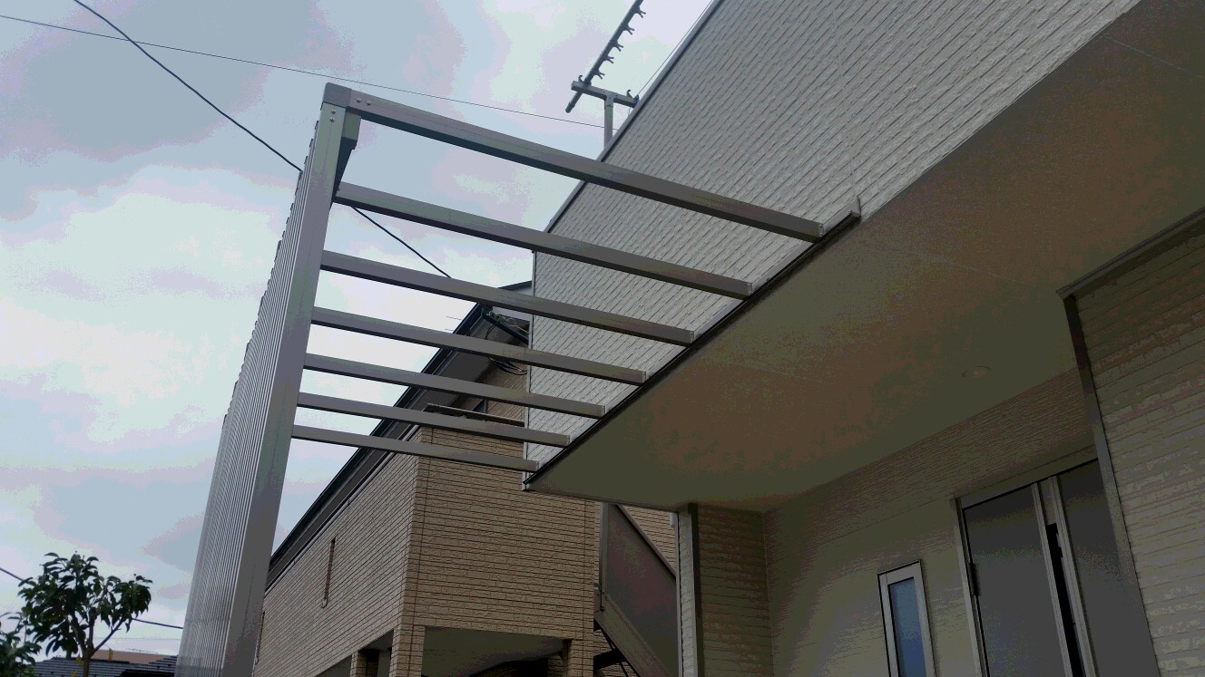 建物に梁をしっかり固定しているので強風でも問題なし!この上にフラットタイプの屋根を取り付ければより便利になりそうですね(^^)20160924_105926