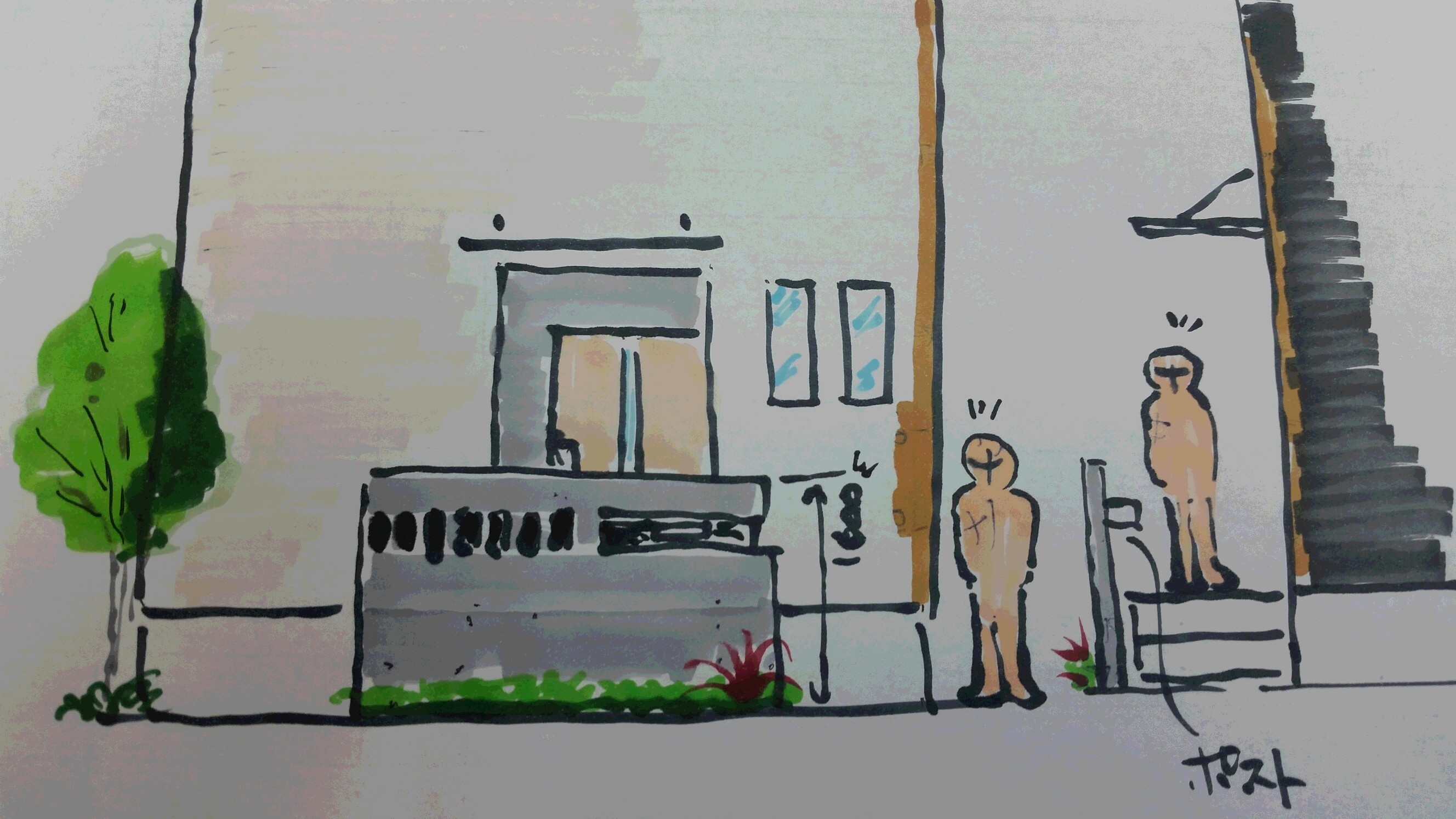 しかし玄関ステップの高さが40センチくらい、玄関開けると塀の高さは1.0~1・2M、腰くらいの高さですから目隠しとは言えません、ポストの位置はさらに下。