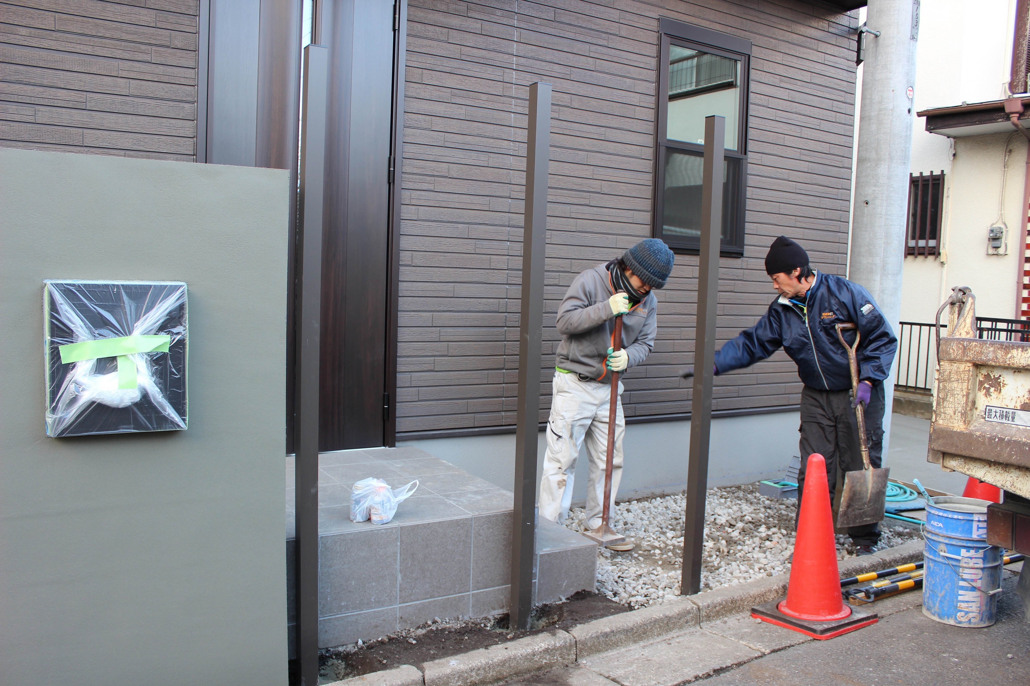 例えば、お子さんの急な飛び出しにプラスして多少の目隠しがほしいという相談の場合玄関前にブロック塀やポールを建てる提案しています。