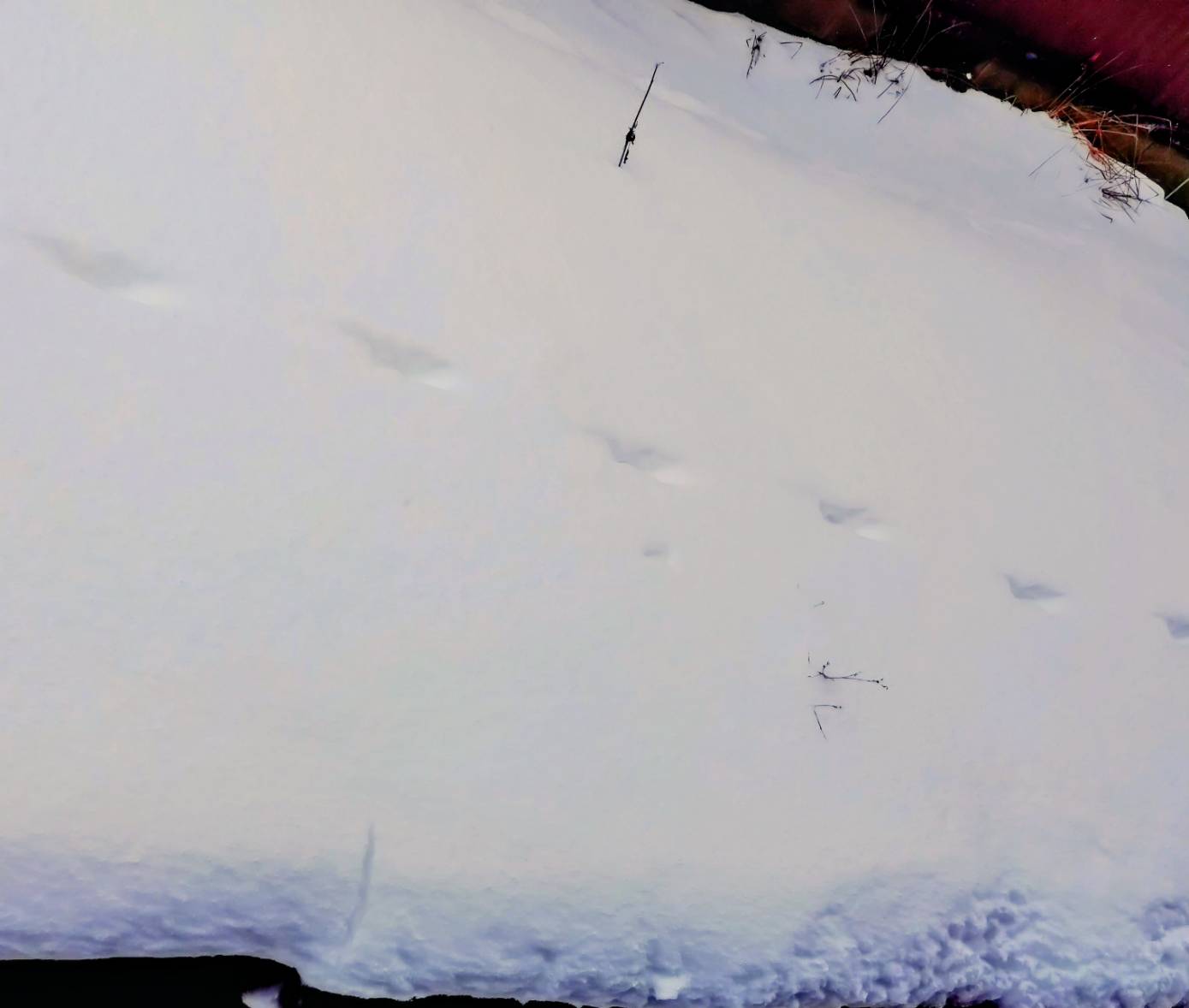 右の写真はキツネorたぬきの足跡だそうです。
