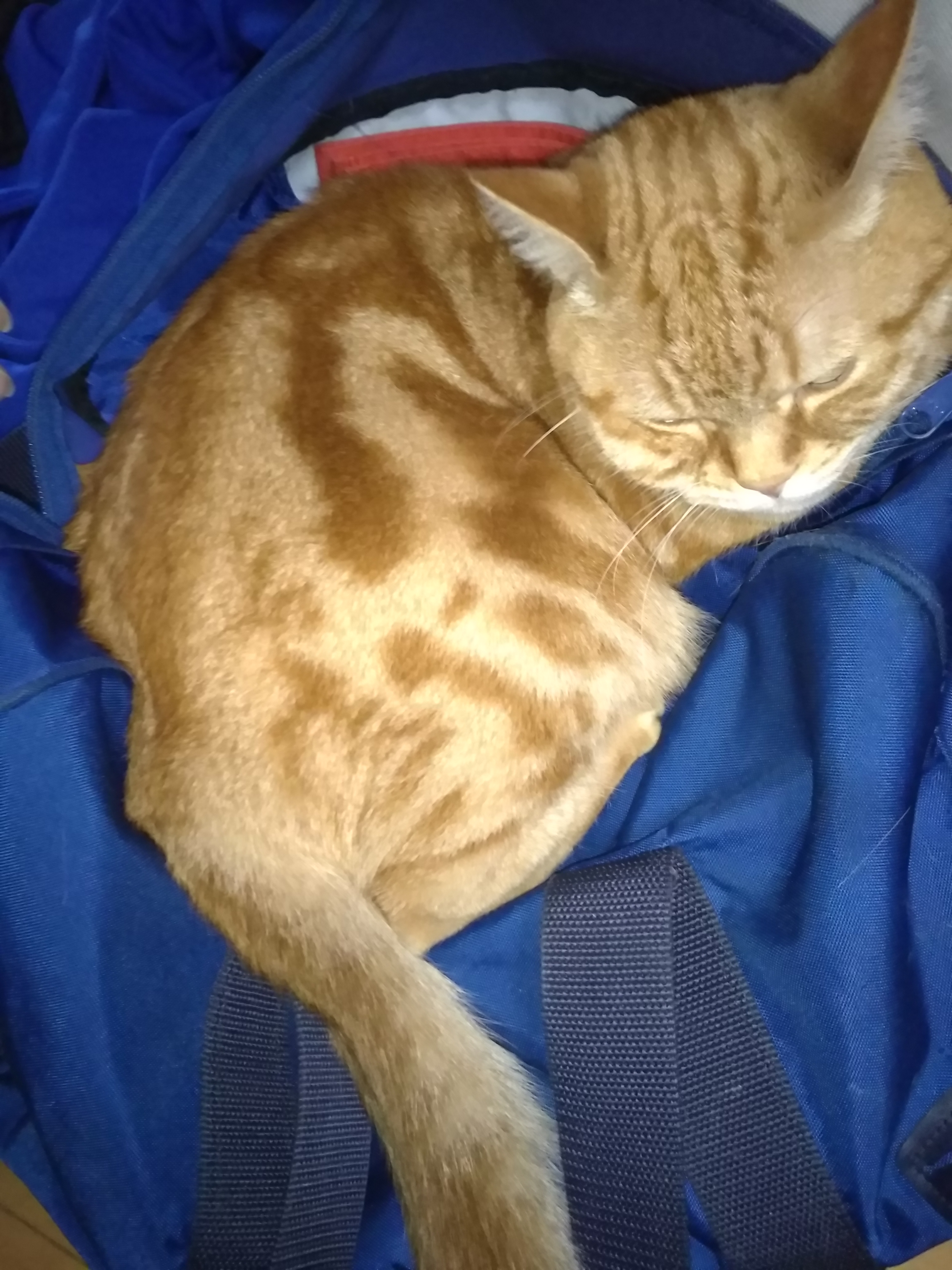 息子の通学バッグに入るでんちゃんです♪