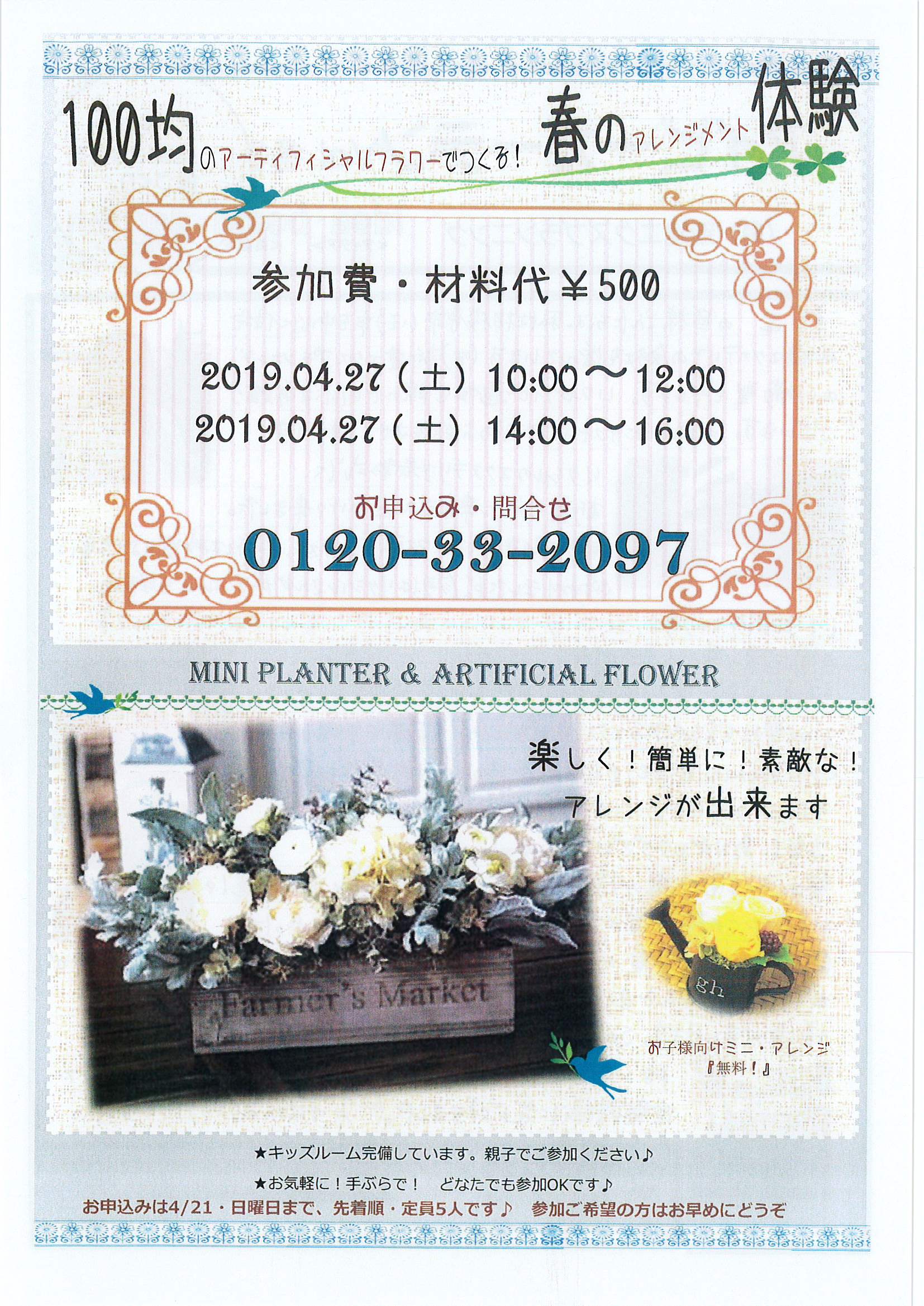 100均のアーティフィシャルフラワーでつくる!春のアレンジメント体験です♪