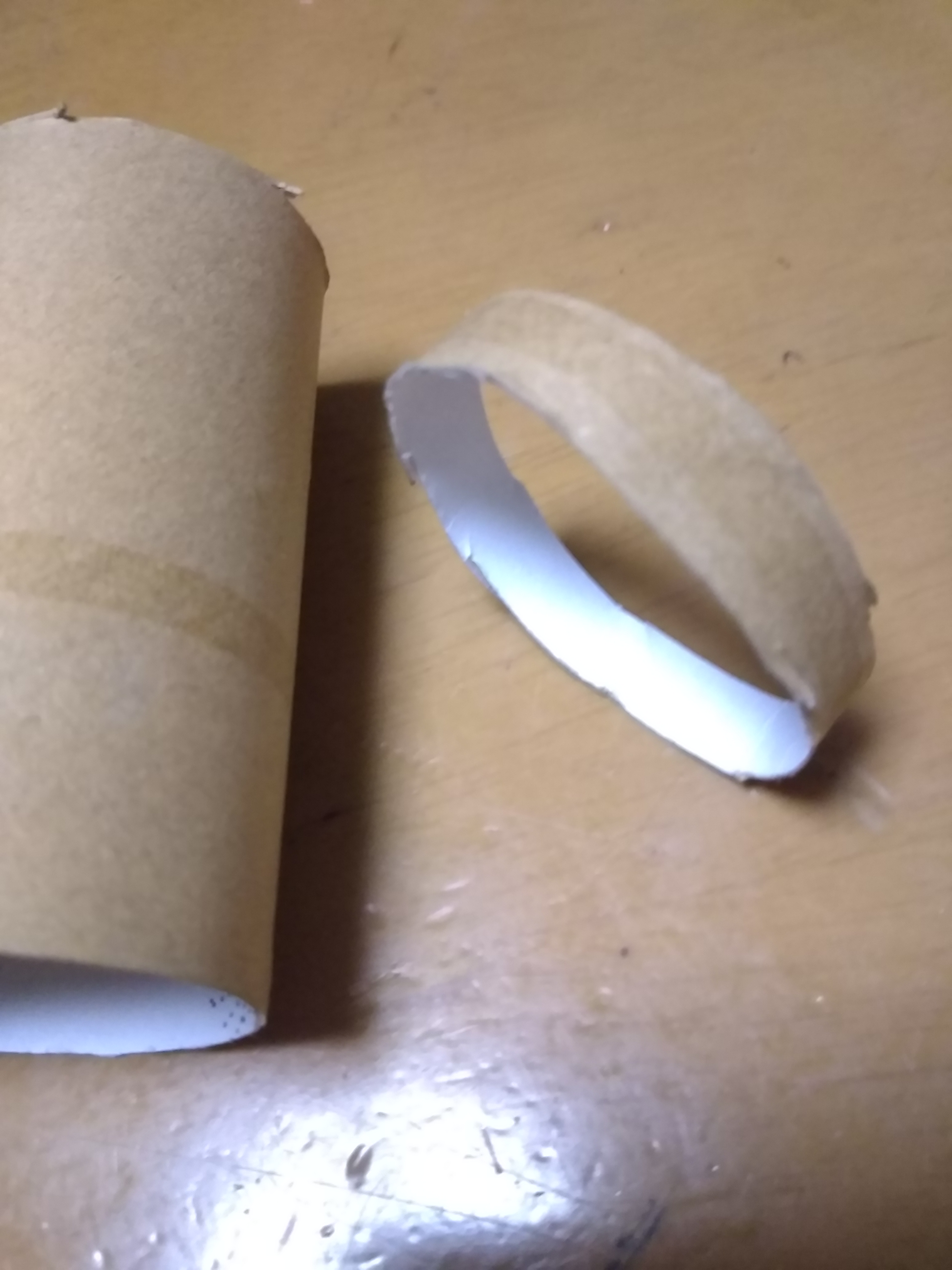 まずはトイレットペーパーの芯を1cm位の幅で切って