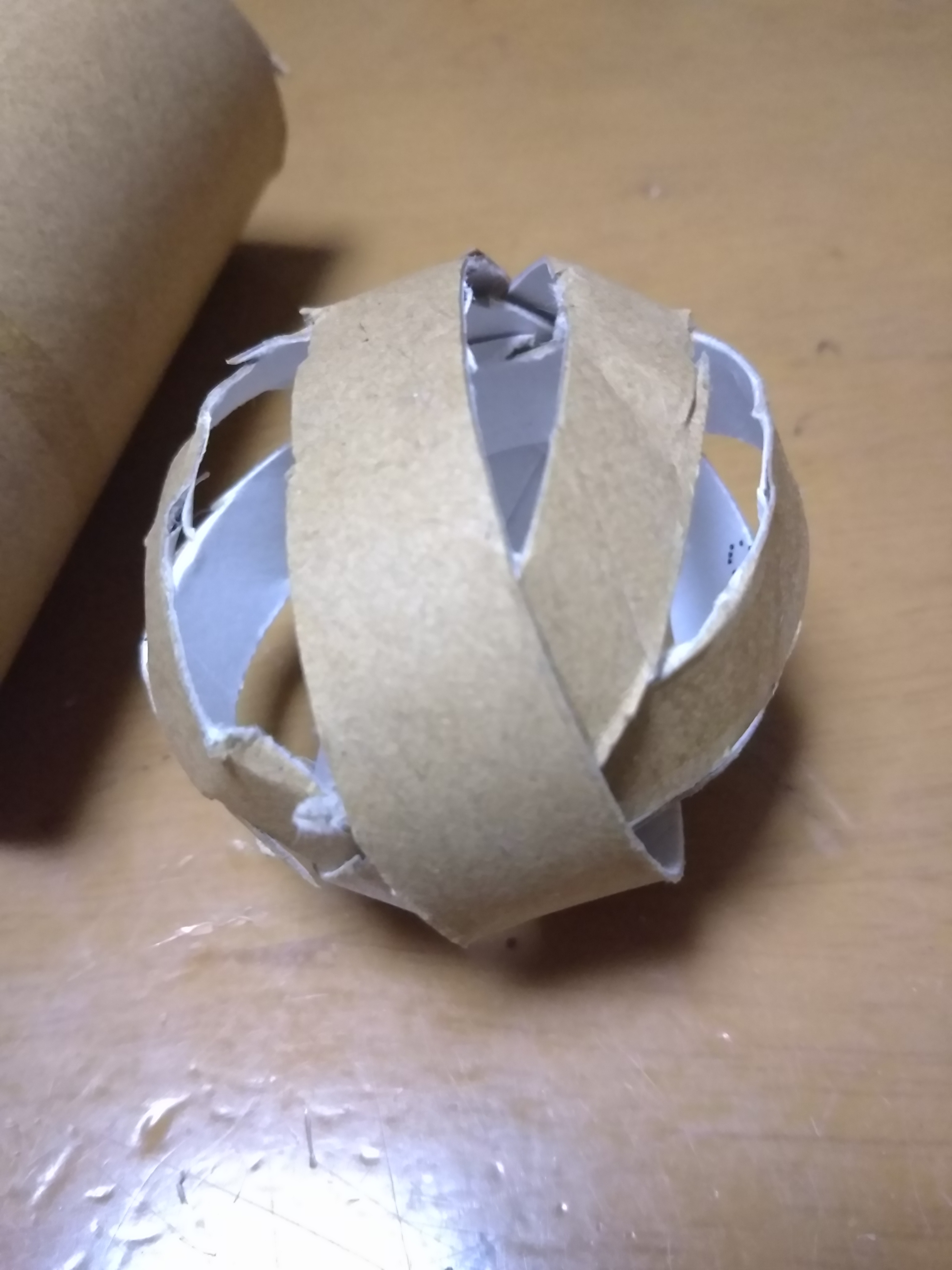 前々回こちらで紹介したトイレットペーパーで作ったボールですが