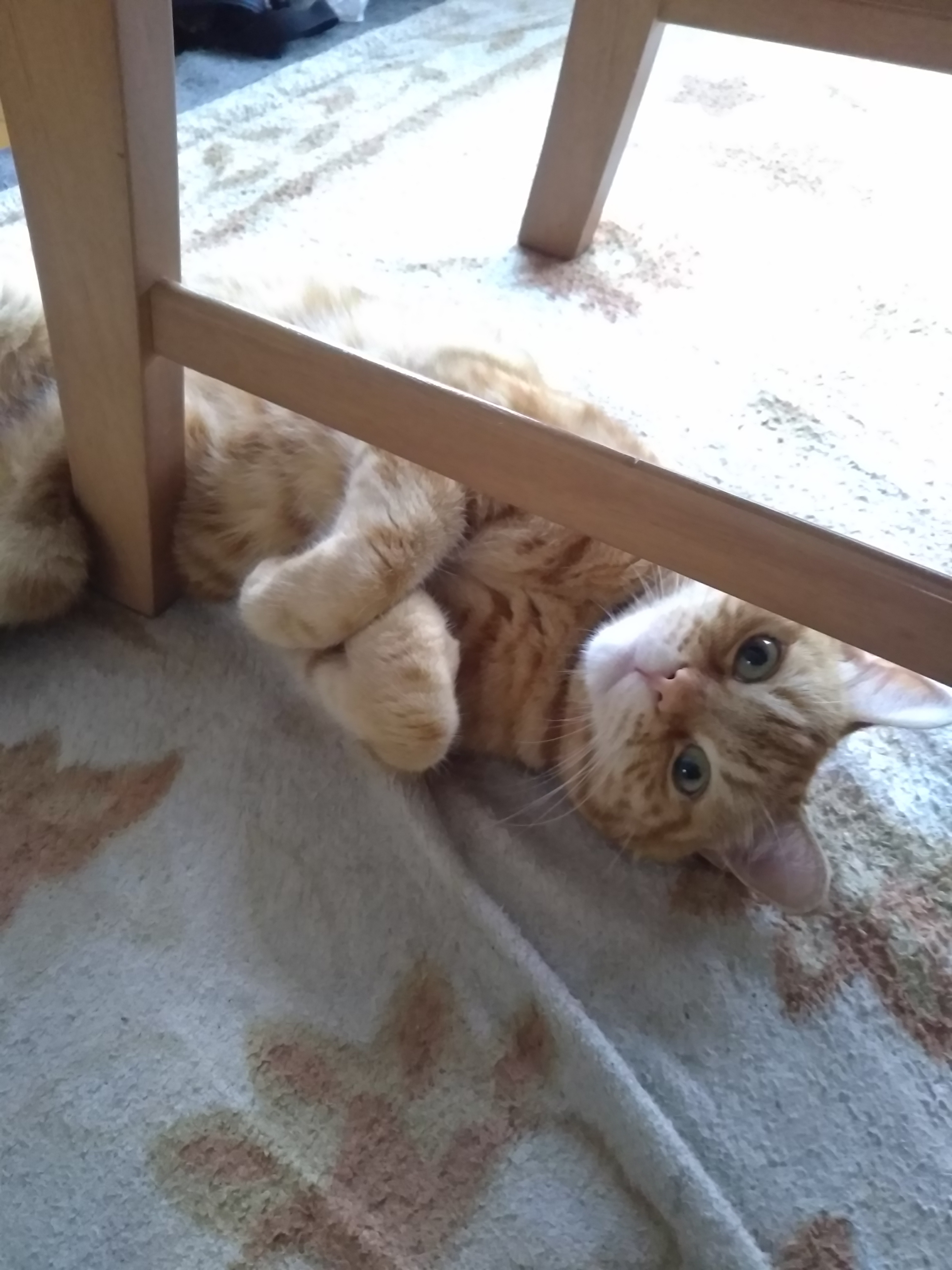 椅子の下からじぃ~っとスナイパーのような視線!