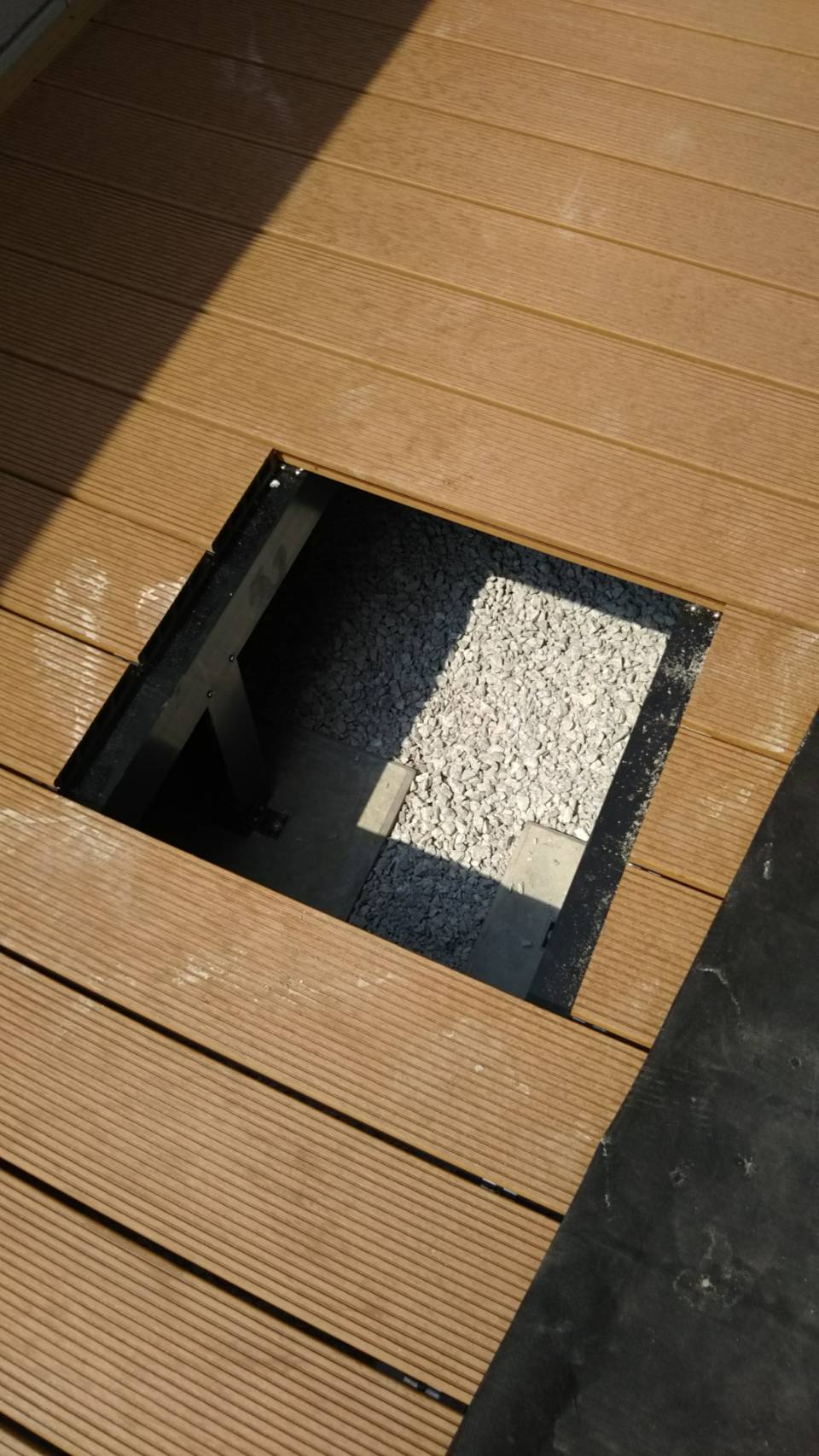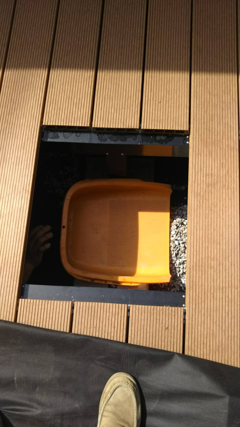 ウッドデッキの床板の1部分に点検口があり取り外しができます( ^ω^ )