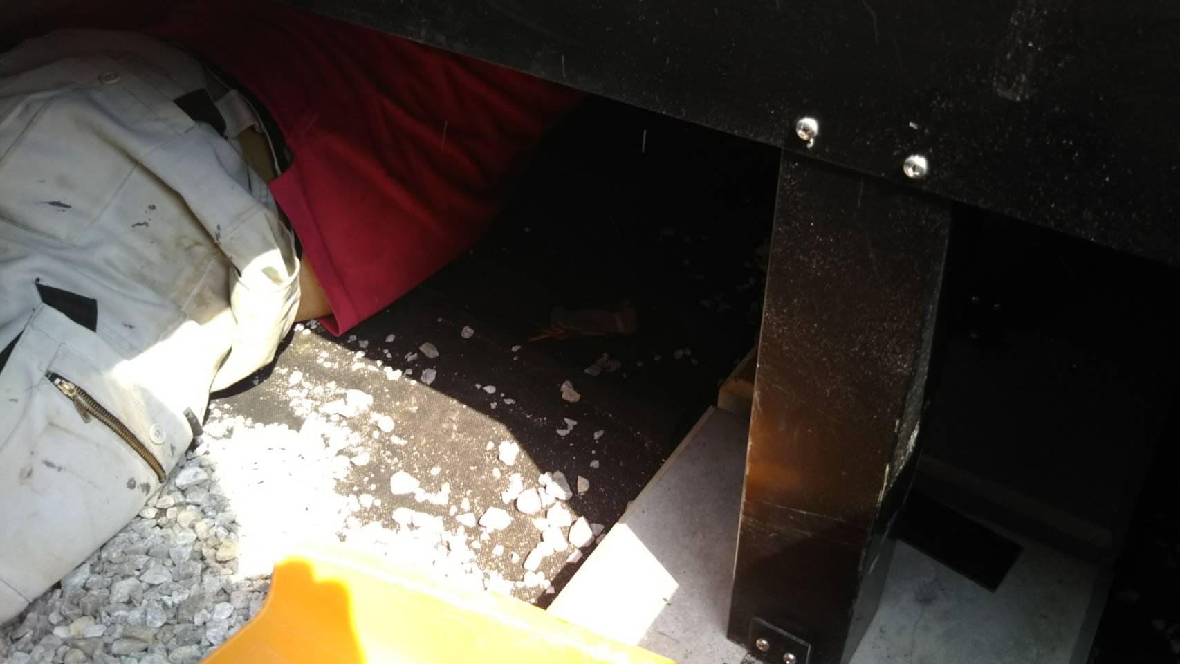 ほふく前進の恰好でひたすら砂利を入れていきます(; ・`д・´)頑張って!!