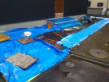 今日の午前中で中止にした現場の施工範囲場所の養生をしたりと、
