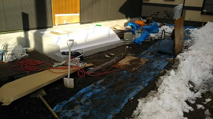 雪が通り過ぎた翌日も置き場周辺の除雪に追われ