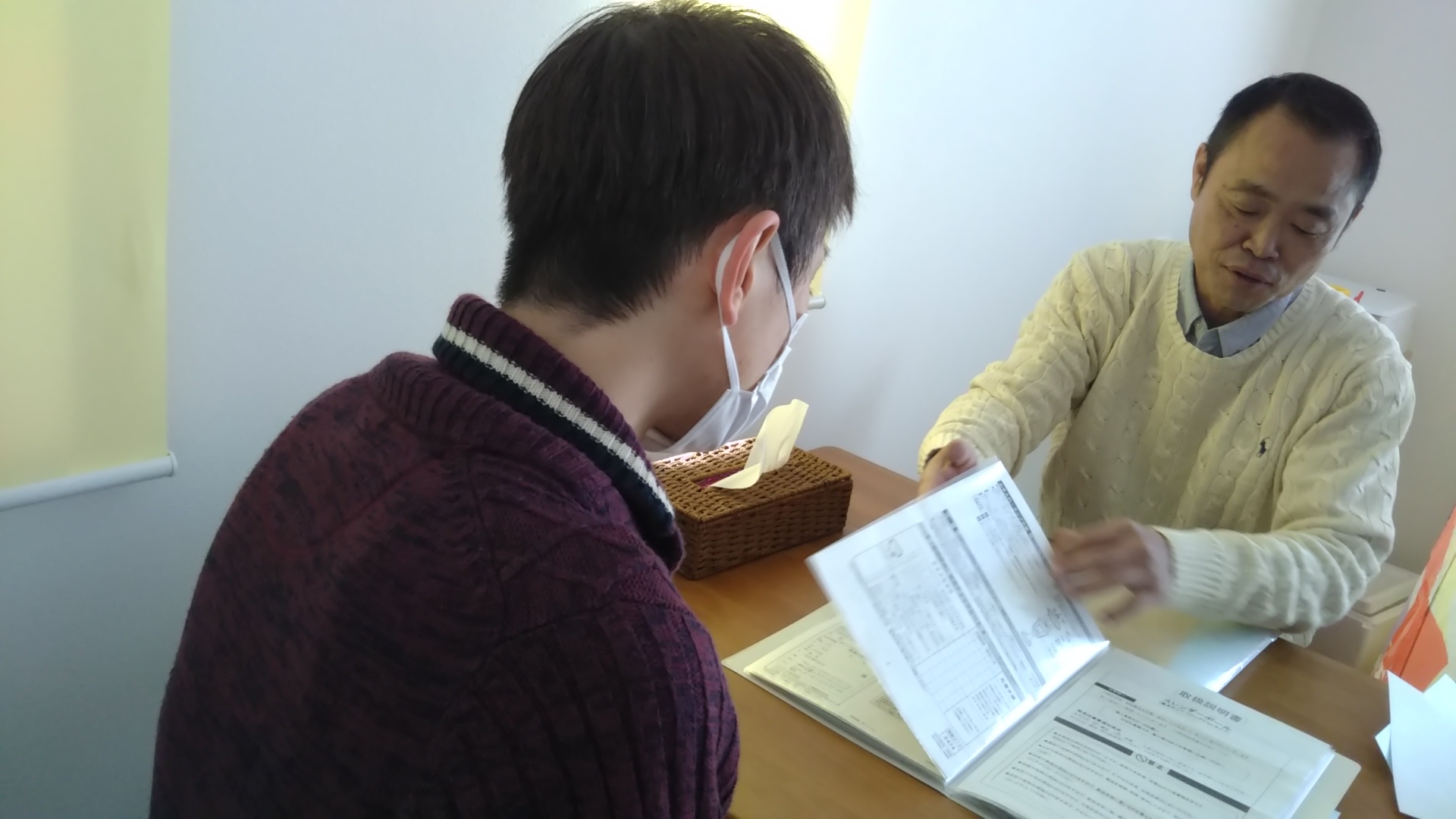保証書を開き一つ一つ丁寧にお話しています。