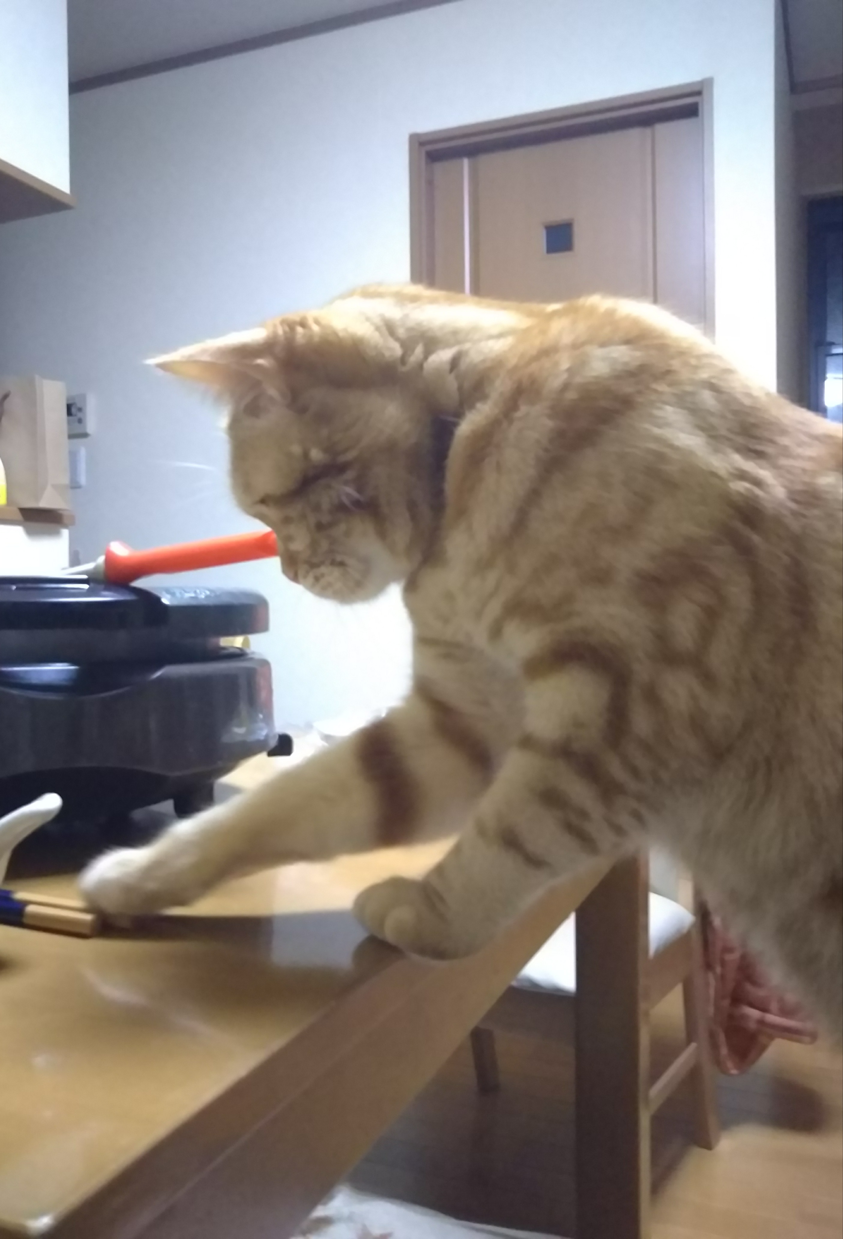 まずは真剣な表情でお箸を並べるでんちゃんの写真から・・・
