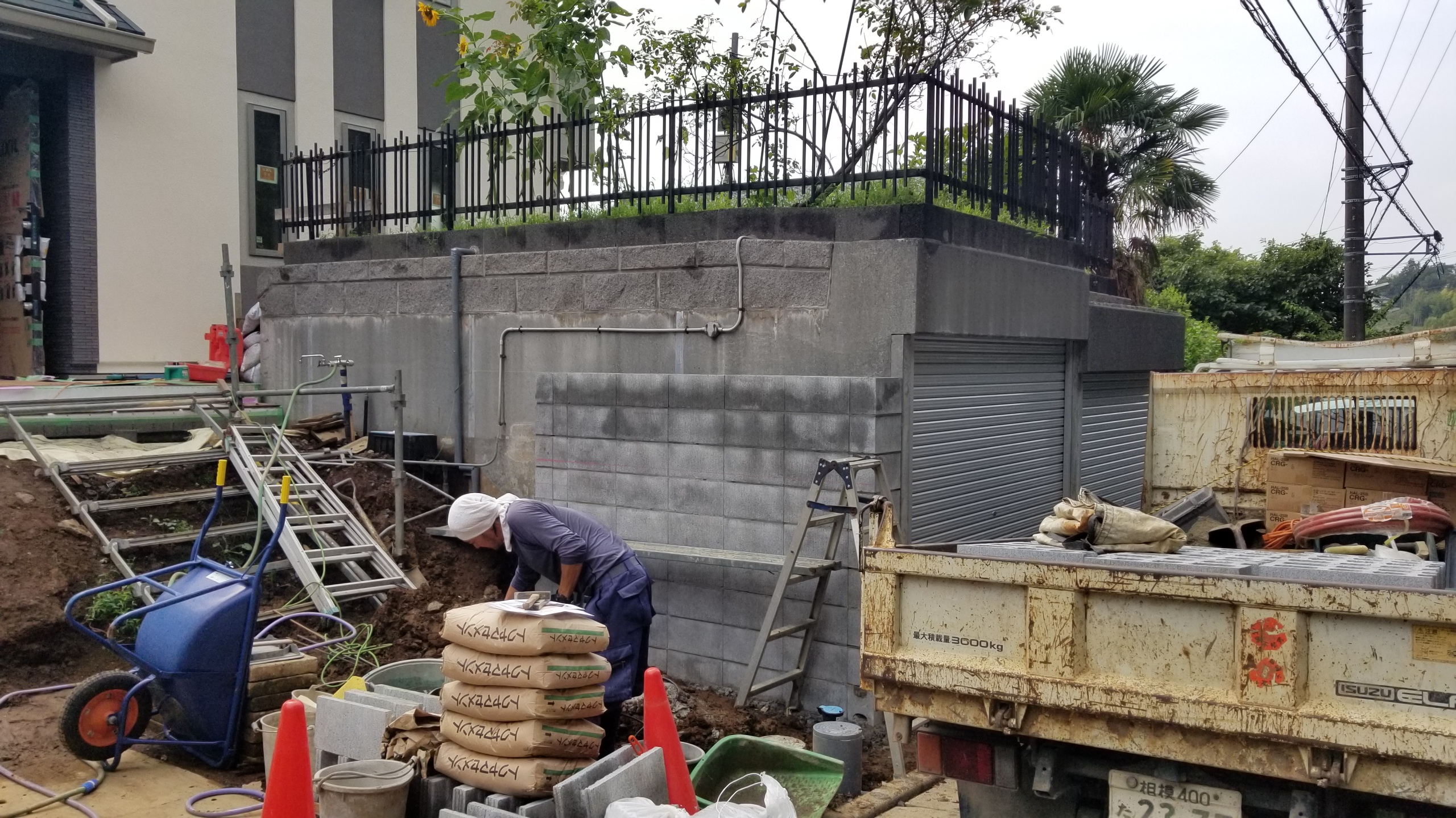 建築完成してからアプローチ階段、駐車スペース土留めと作業を進めてきました。