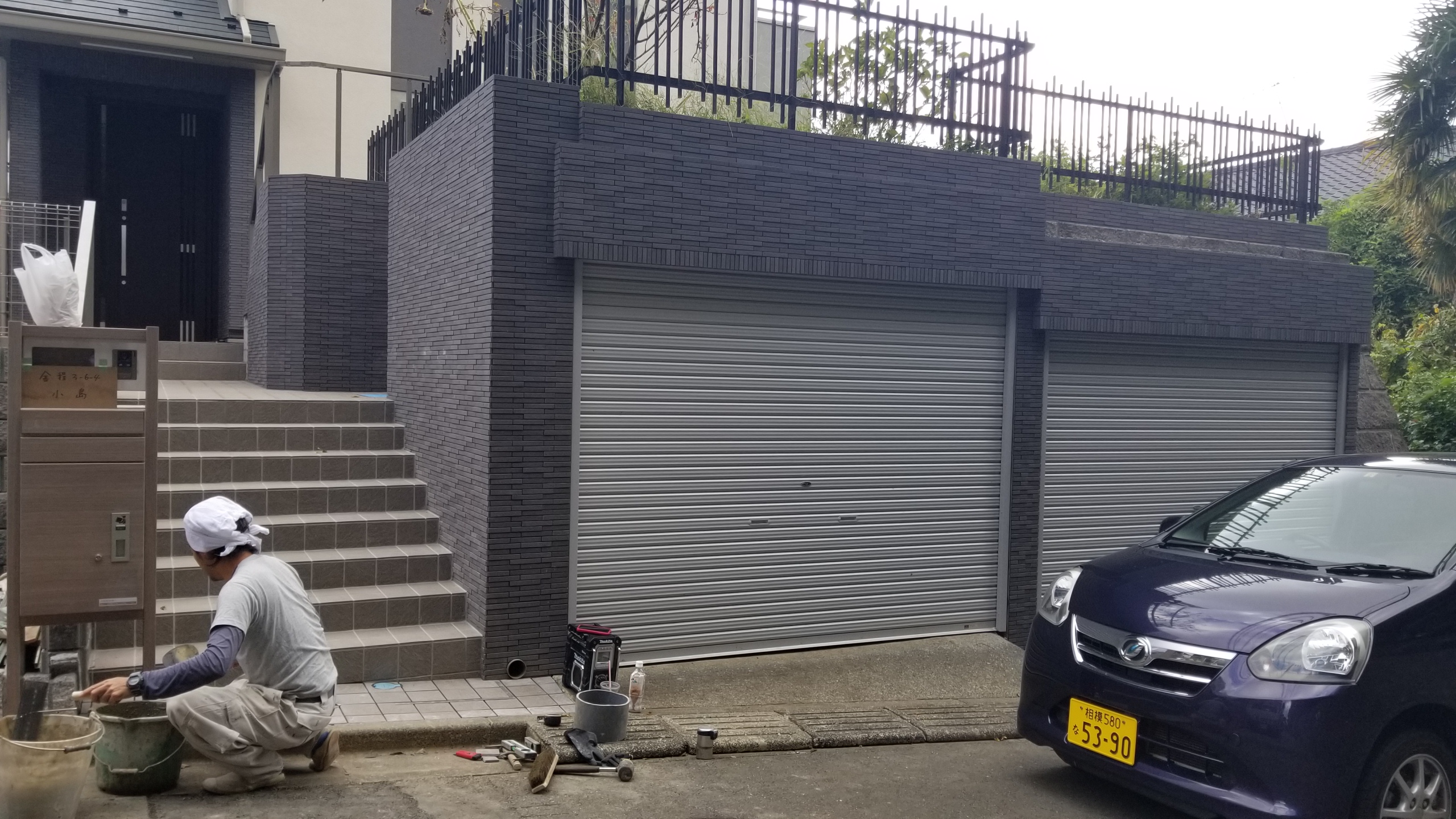 コンクリートで古びていたビルトインガレージがタイルで生まれ変わりました。