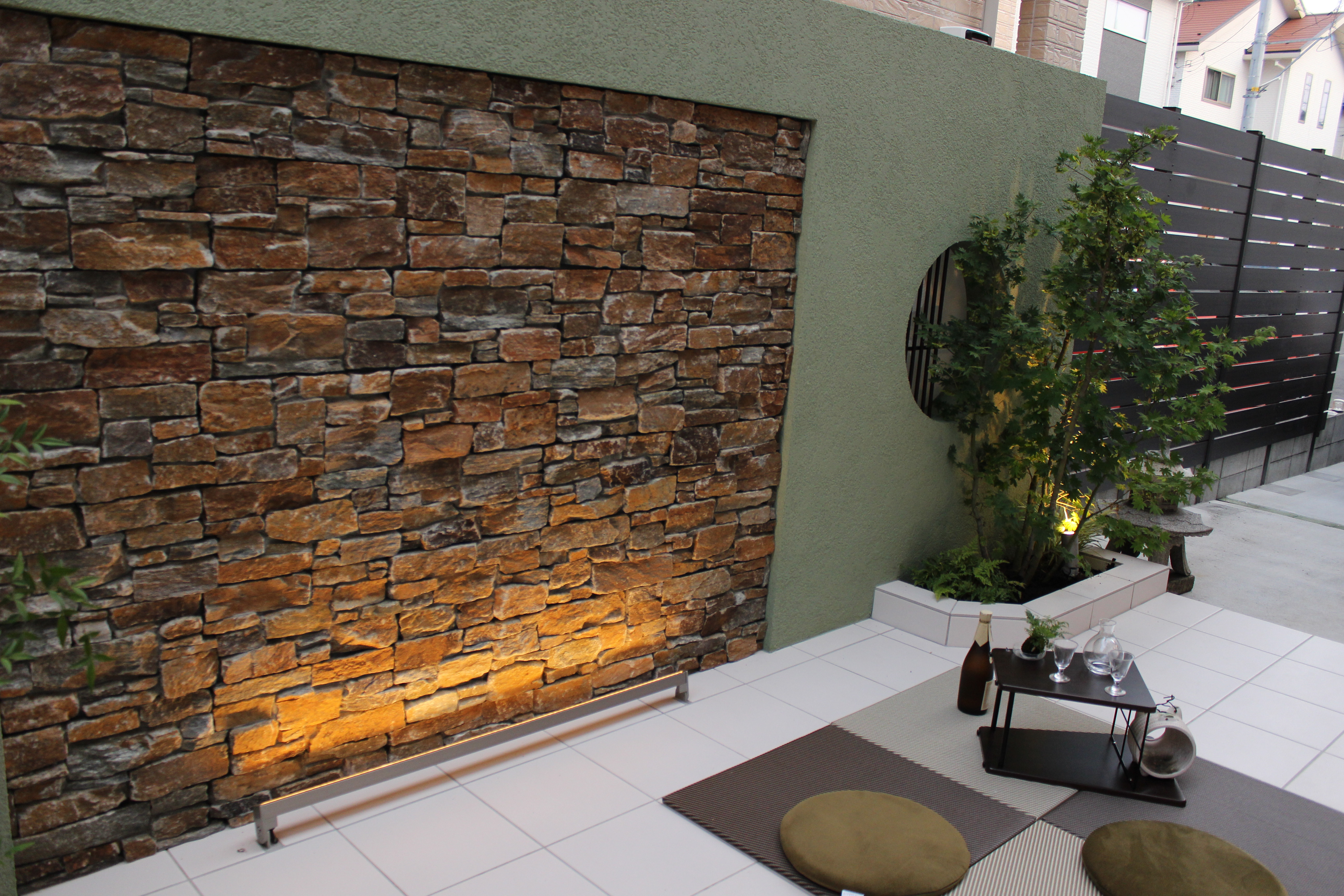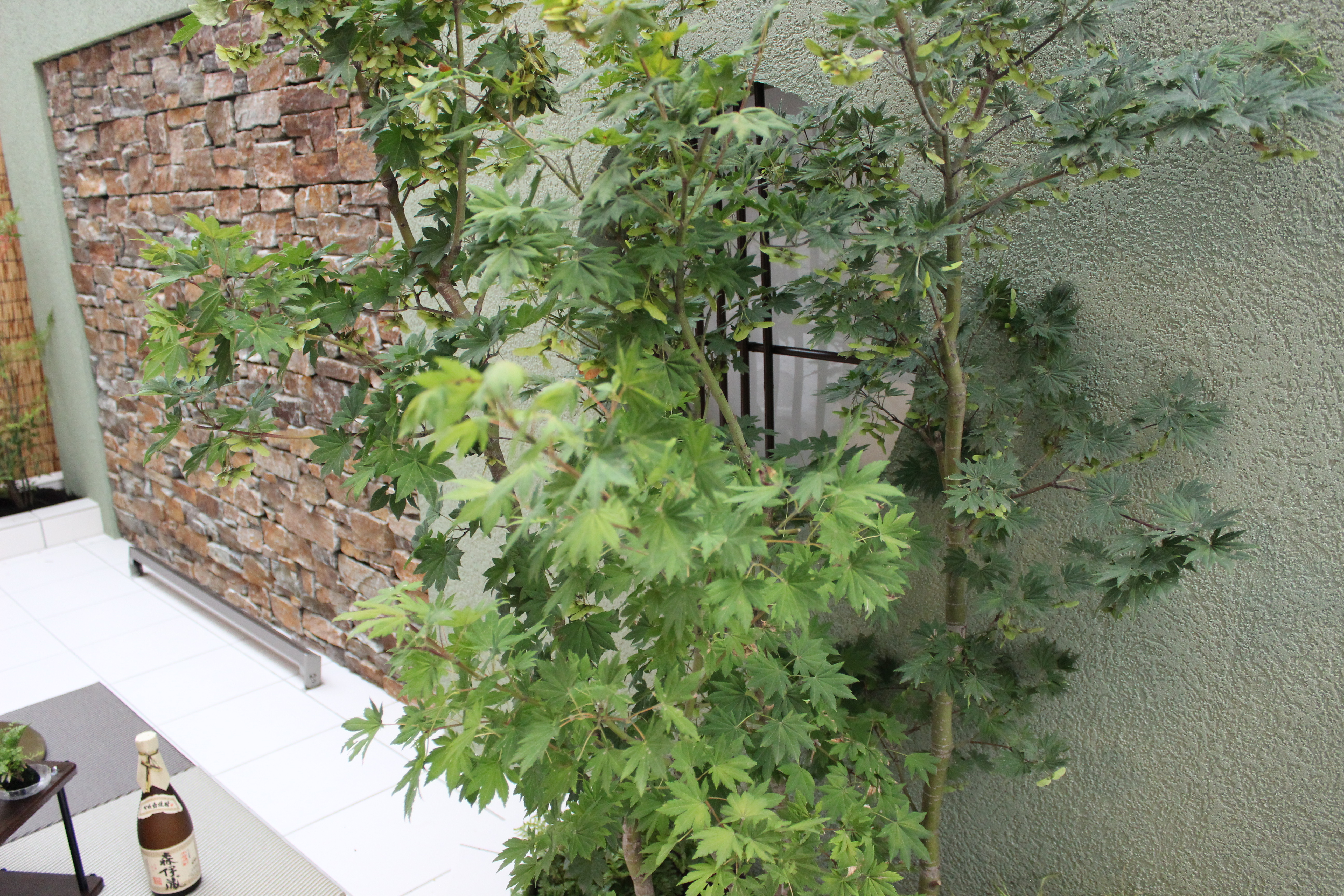 和風イメージのデザインウォールにもみじを植樹した現場です(*^^*)