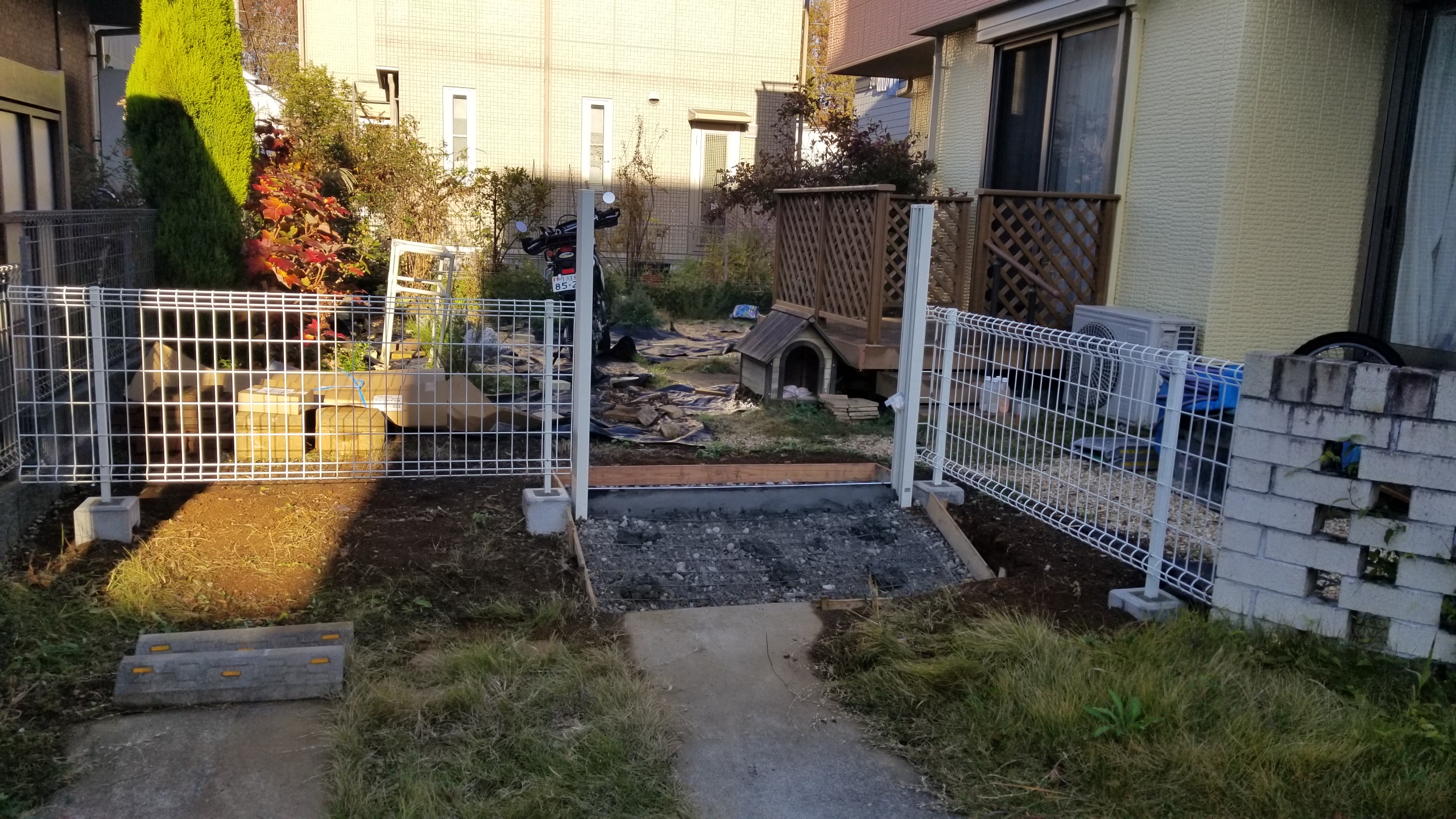 あとはスロープのコンクリートと門扉本体を取り付ければ完成です。