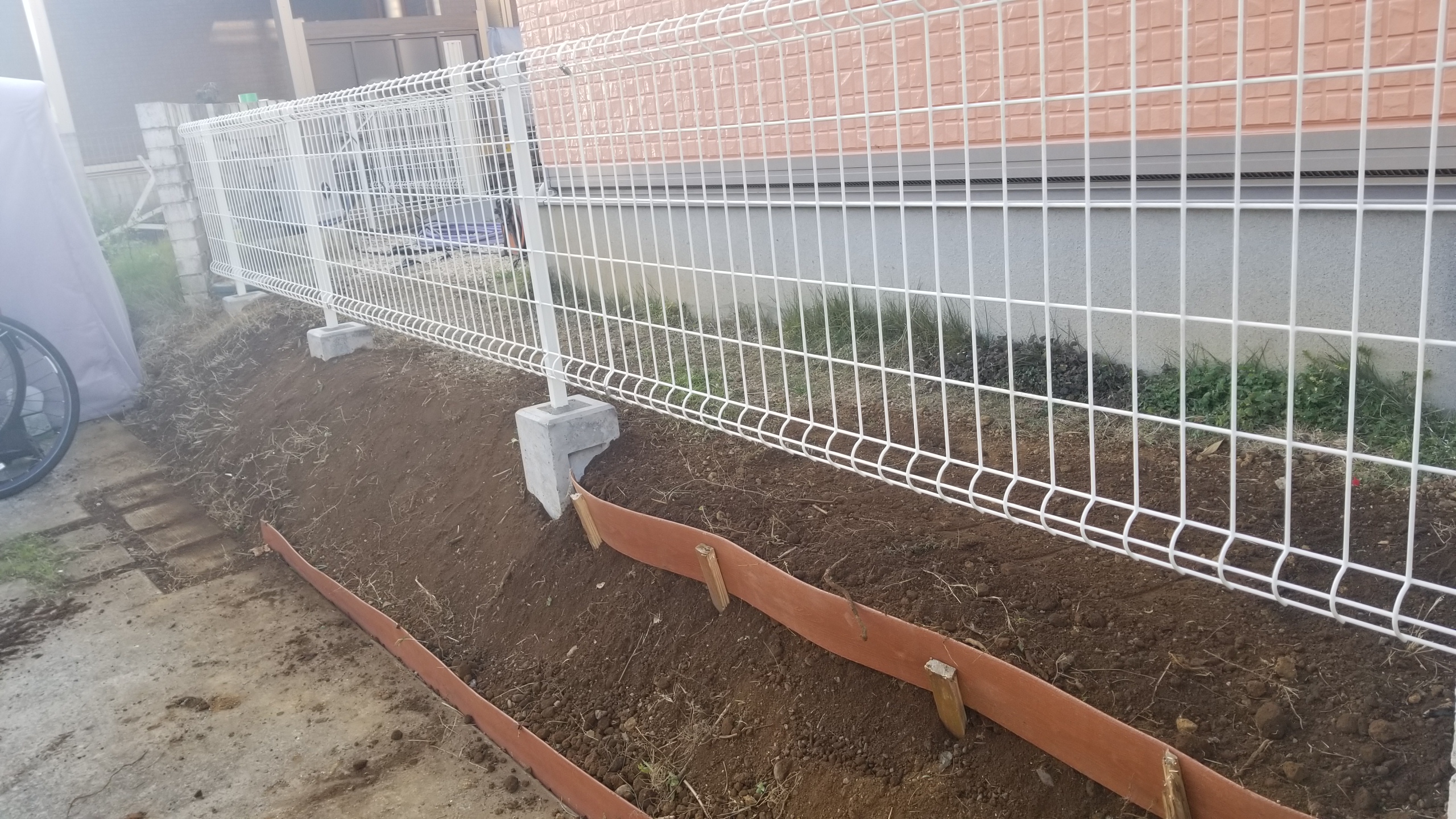 フェンスは独立基礎として、土留めは作らず法面を植物でいっぱいにする予定です。