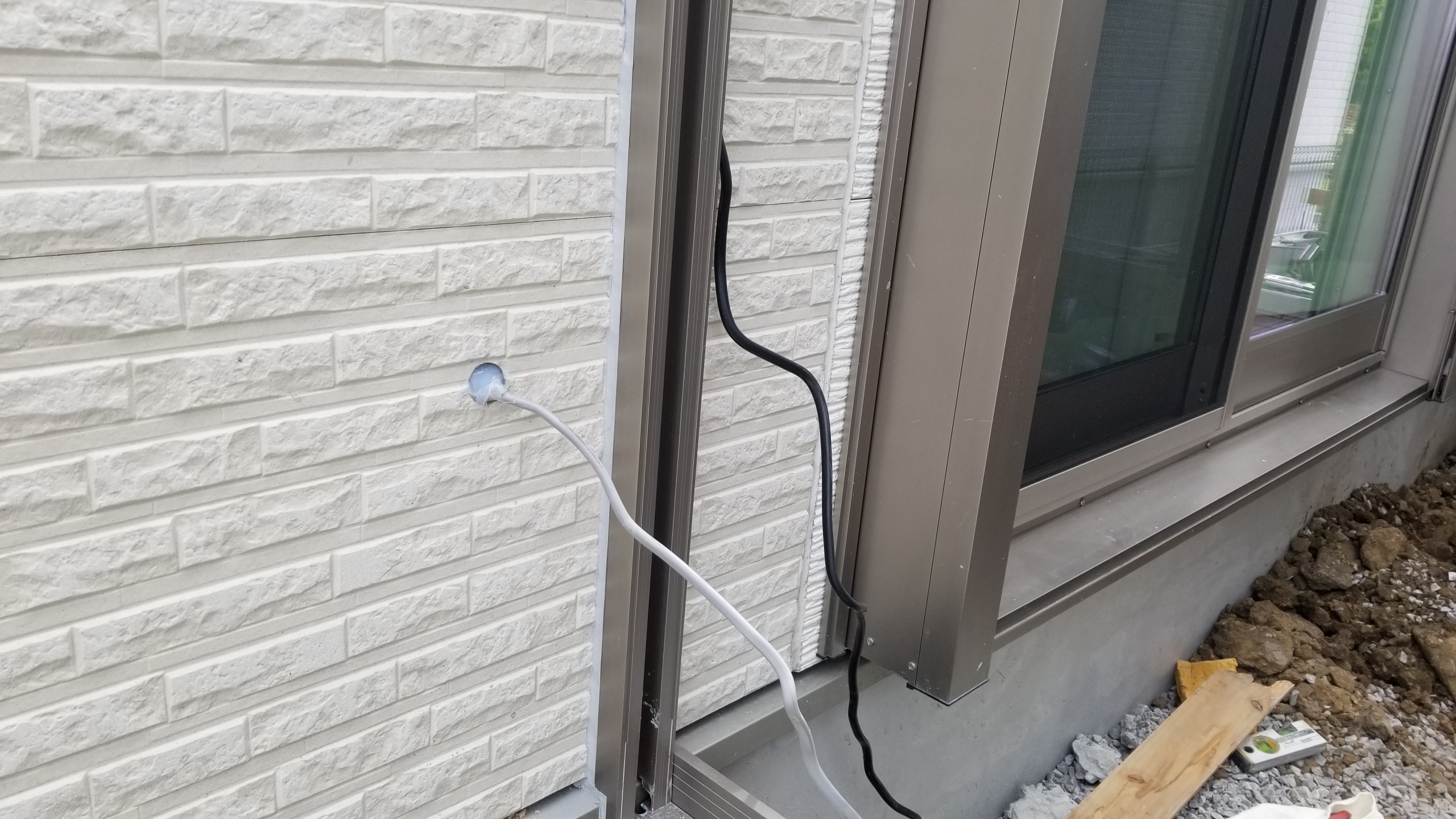 建物外部にコンセントがない場合は、室内から確保します。20190509_092733