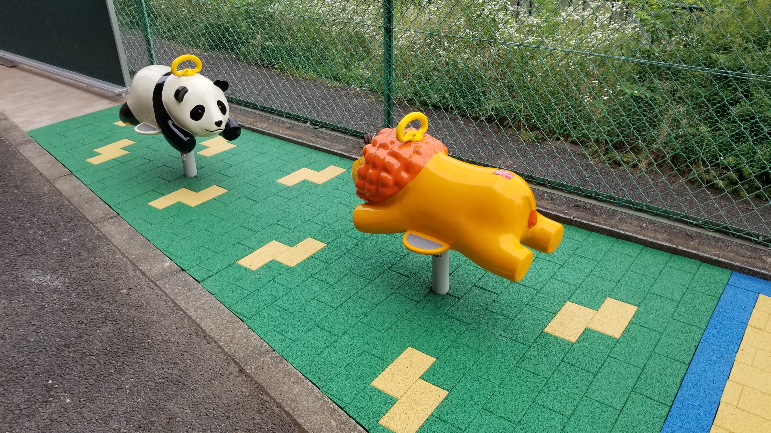 前後に動くライオンとパンダの遊具が絶対可愛いと、