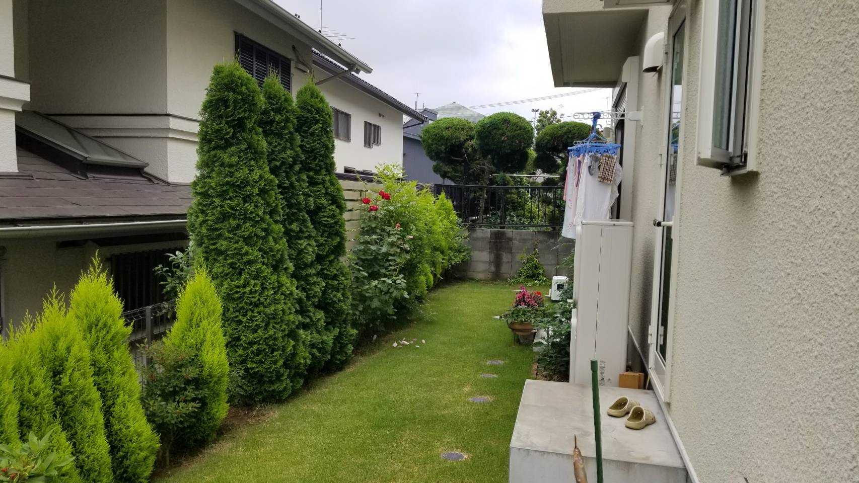 芝刈りでも、ブロック等障害物がないとお隣さんに刈った葉が飛び散ったりと