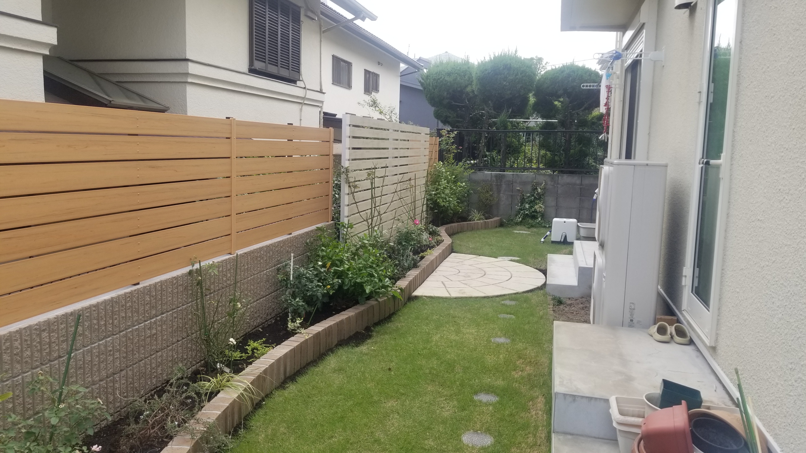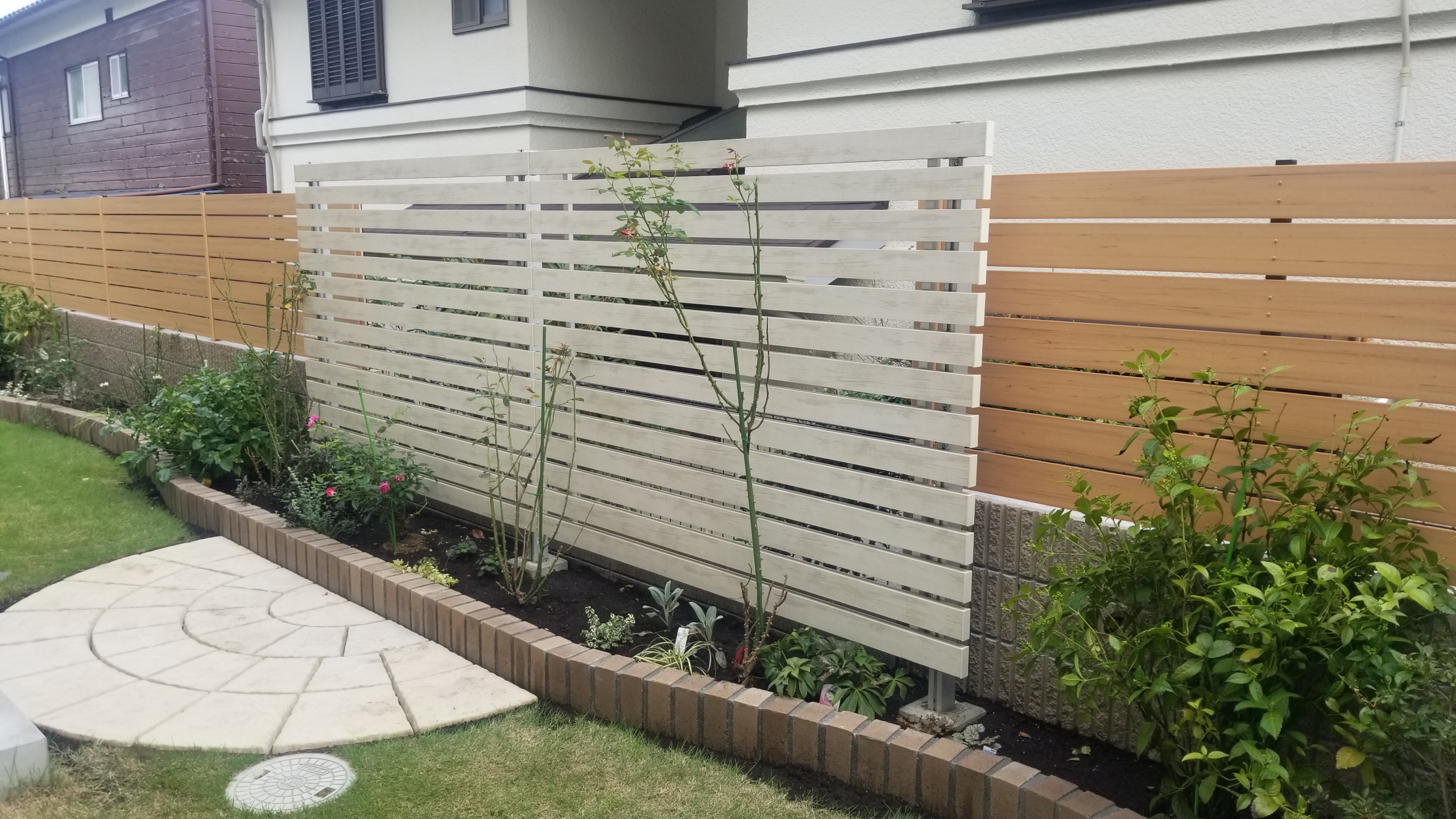 その上には木目調のフェンスを設置して、これから育つ植木の葉も敷地内にとどまるようにしました。