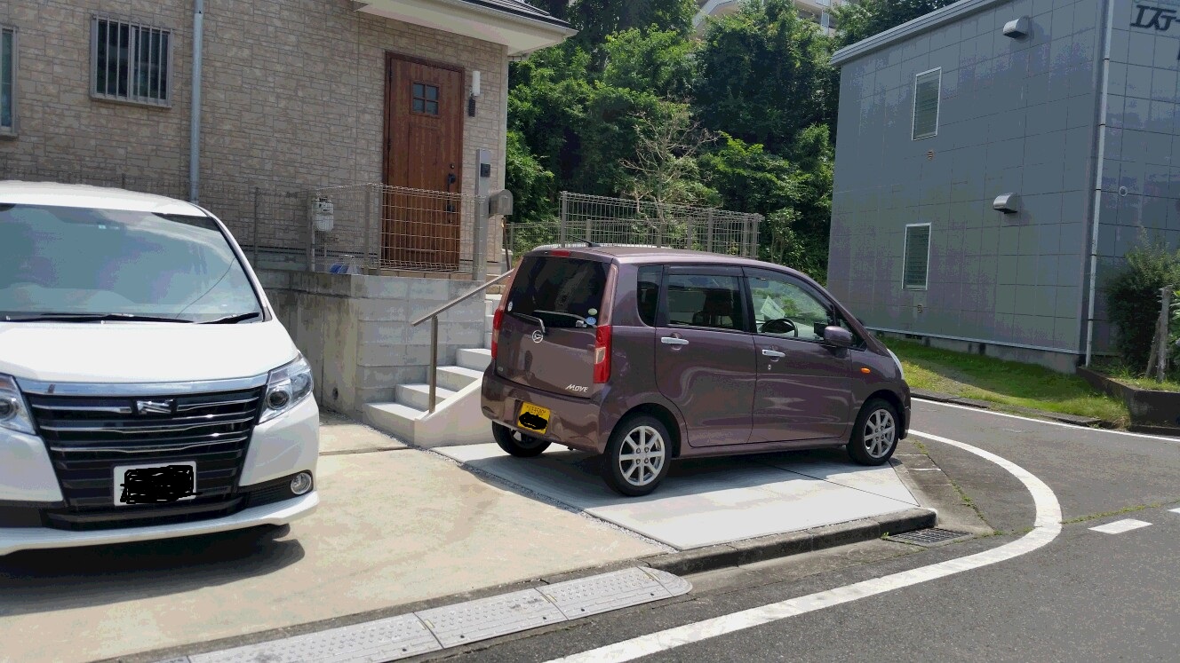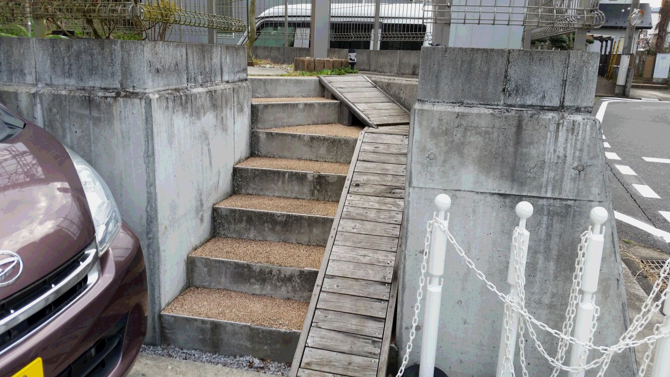 敷地が擁壁で囲まれていて車しか停められない・・階段に板のスロープを設け自転車を上まで持ち上げているが大変、駐輪スペースと来客時の駐車スペースを確保したいというお問合せを頂きました。