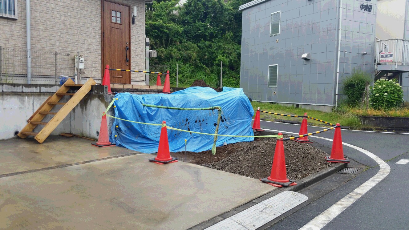 建物外周を調査した結果擁壁を壊すことに問題はありませんでしたが、問題となるのは埋設物の有無!