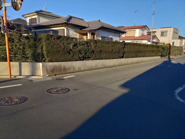 交通量が多いい敷地境界線の生垣、