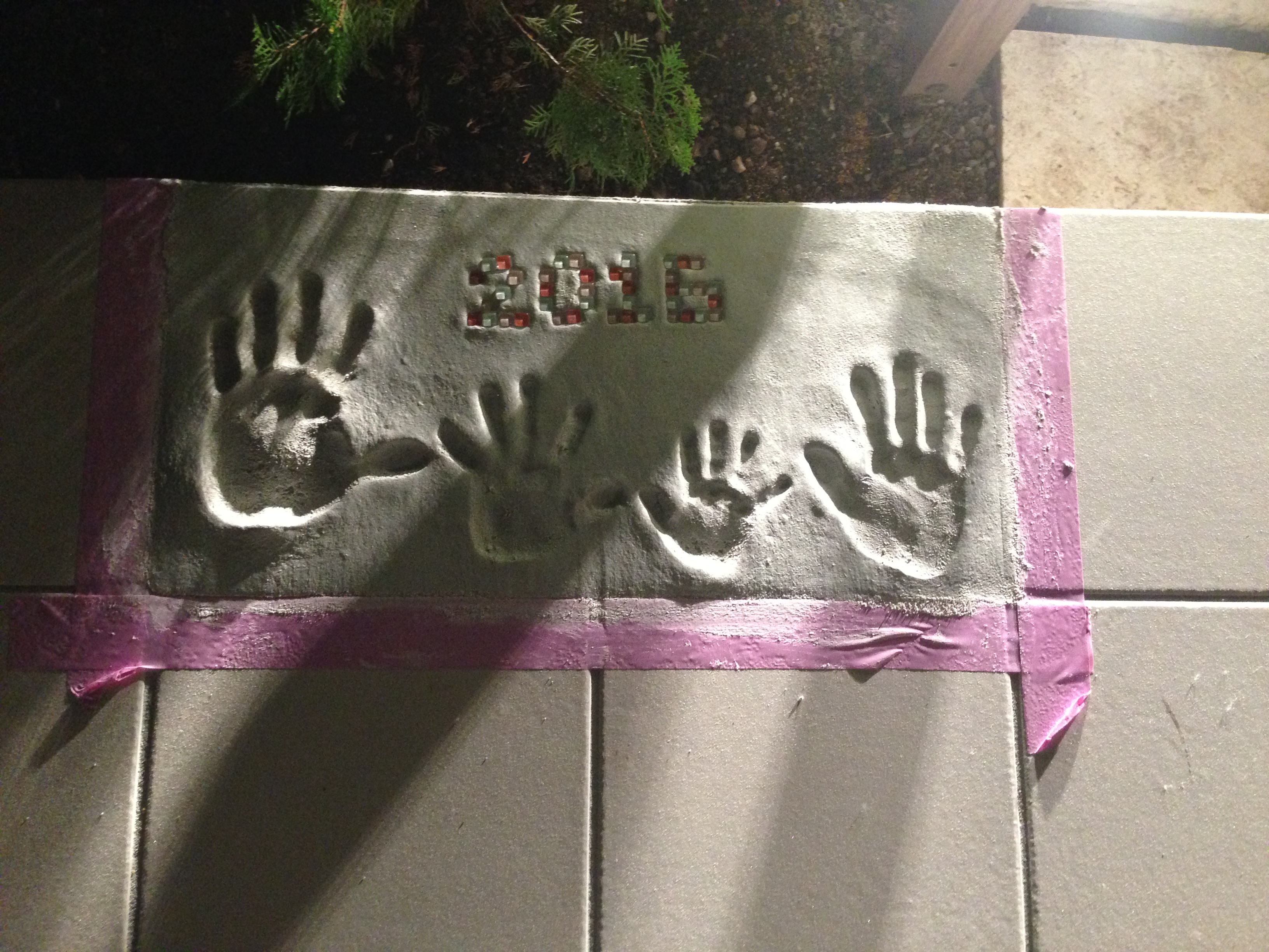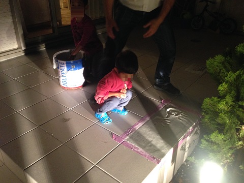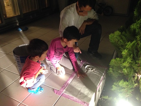 今回ご依頼のお客様とリ・ガーデン工事完成の記念に手形を一緒に作成しました(*^^)vお施主様と連絡を取り合いながら天気予報とにらめっこ(゜o゜)!