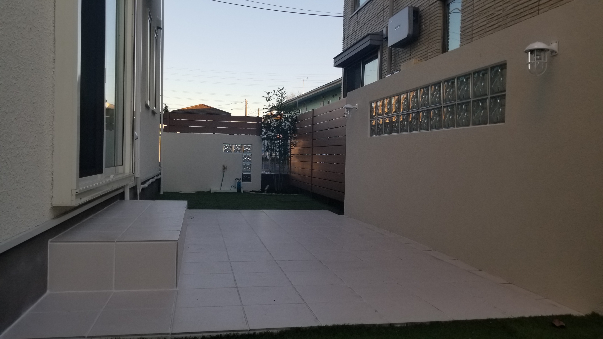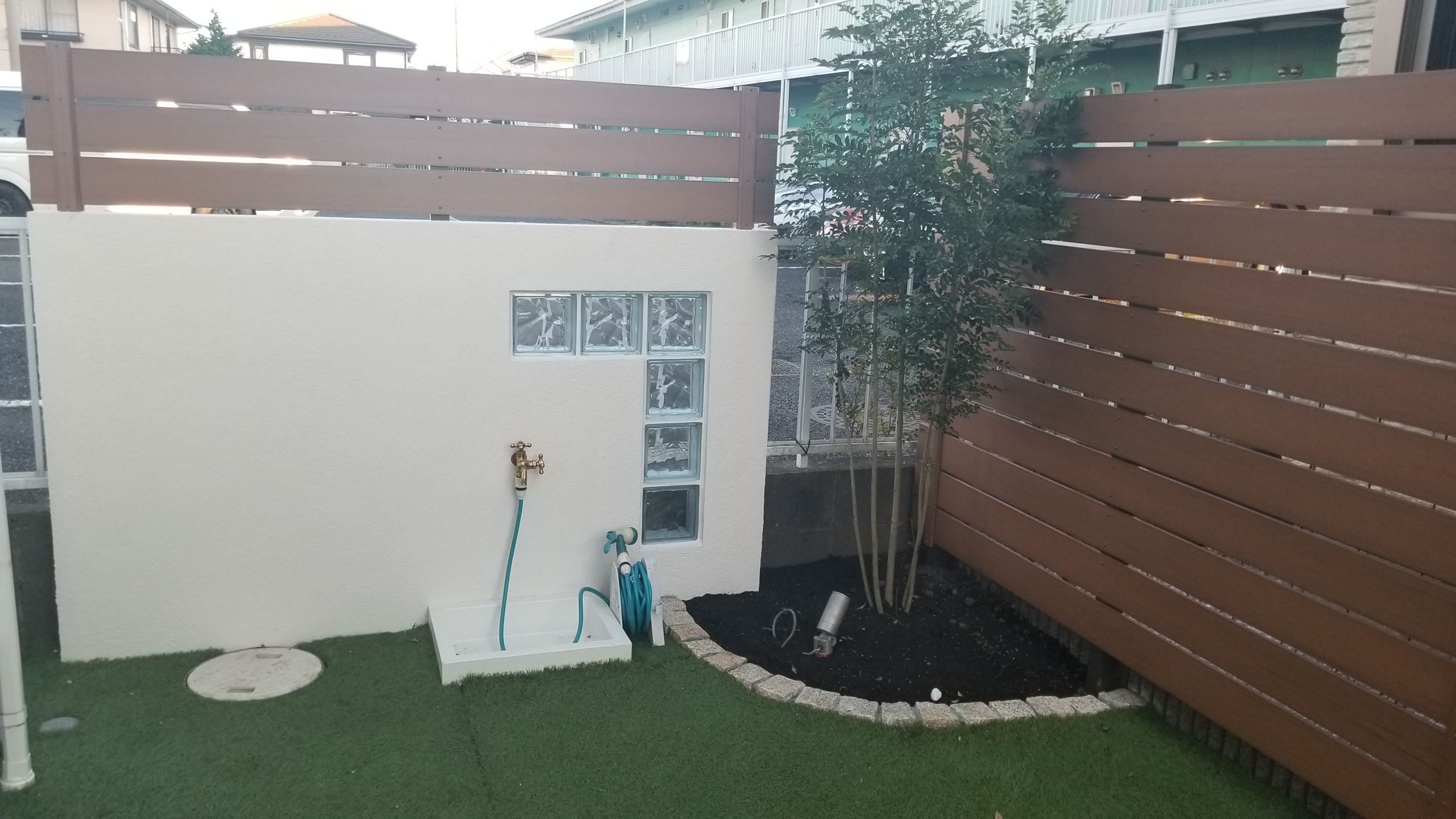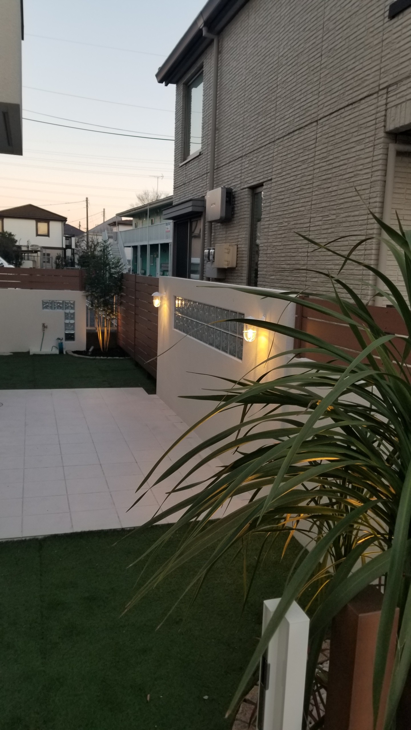ガラスブロックをふんだんに使用し、白をメインとしたプライベートなお庭に大変身です。