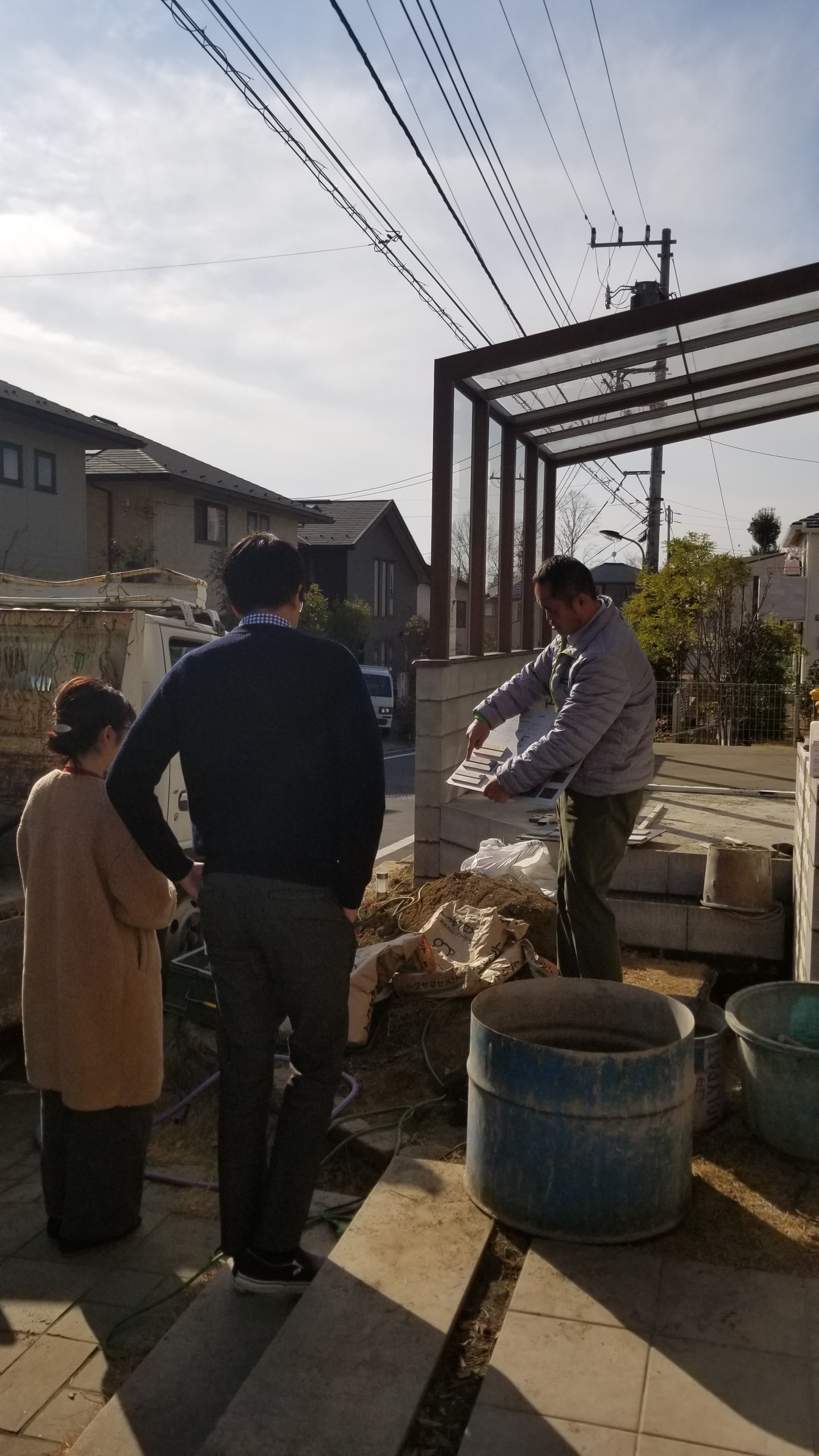 ある程度作業を進め完成の大きさやポスト・インターホンの高さを一緒に考えてます。20171223_155507敷地の形や建物とのバランス、道路の勾配など図面ではイメージが伝えにくい部分は