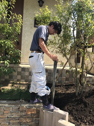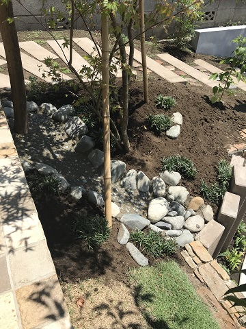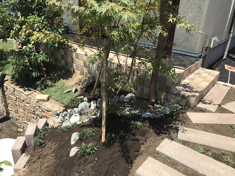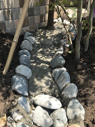 ただ水路と言っても施主様のイメージに合うように・・自然な小川をイメージすることにしました。(*’ω’*)