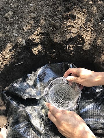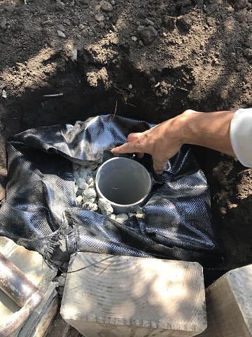 埋めたパイプの周りは水がしみ込みやすいよう砂利で埋め戻し。