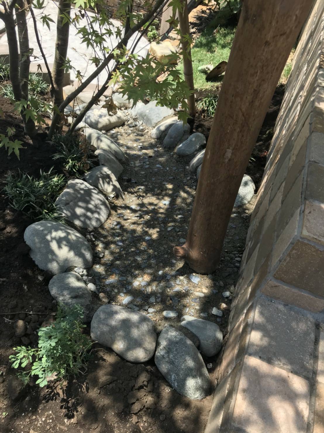 そこで外構デザインに合う自然な排水路を追加することにしました。