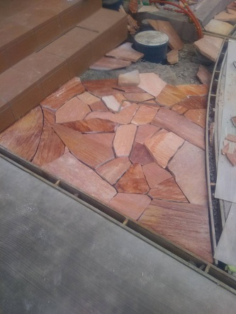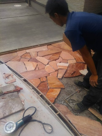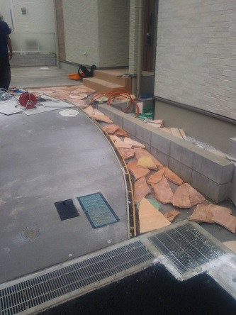 アプローチ乱形石施工中!