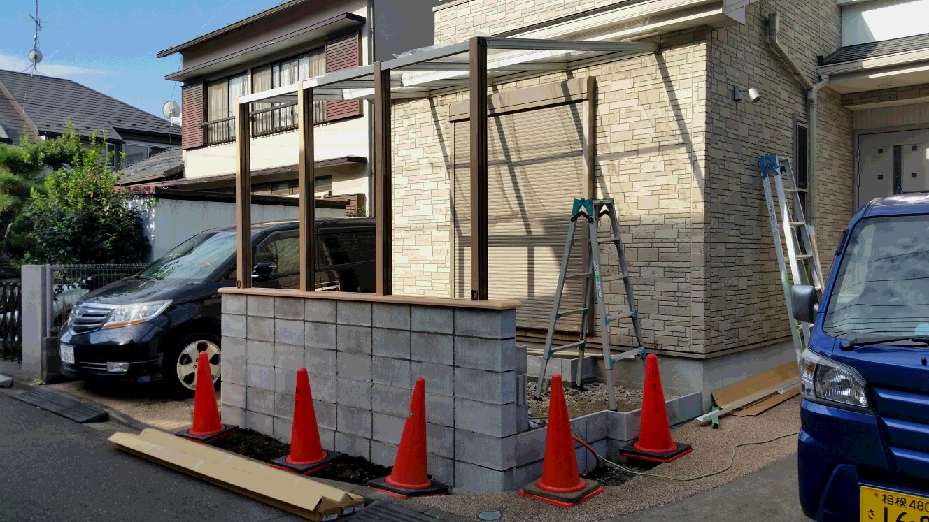 もう一か所、テラス屋根LIXILココマサイドスルーを取り付けている相模原市のO様邸!