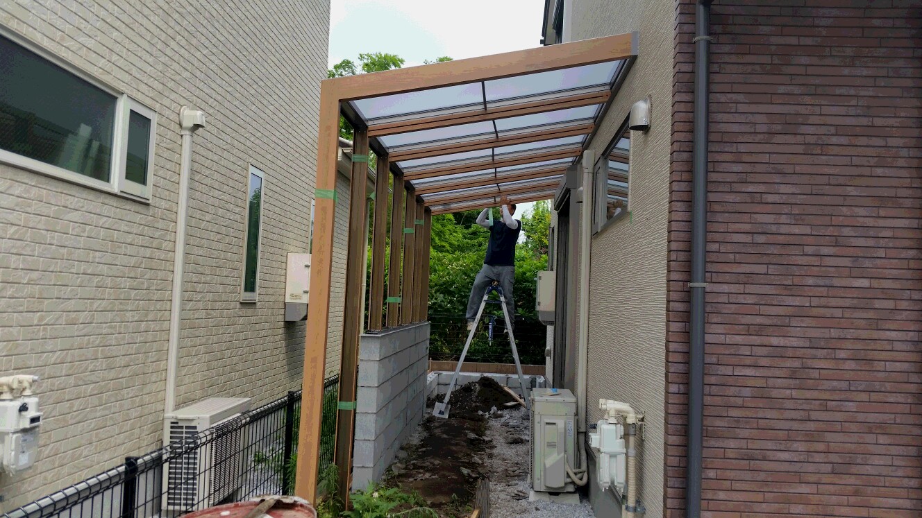 弊社職人達、テラスの工事は手慣れたもので下地の作業はあっという間に完成・・