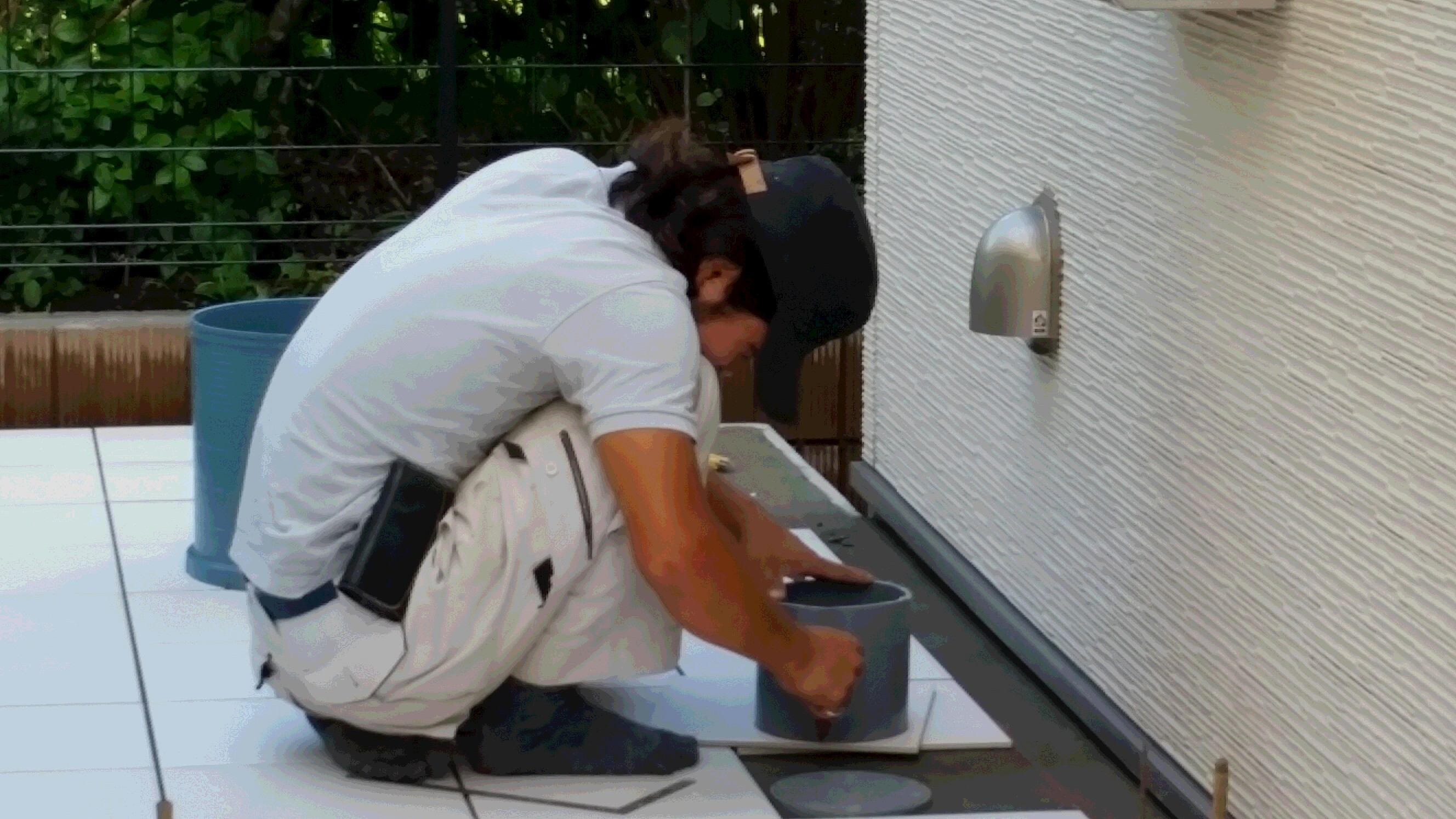 後日現場確認に出かけると綺麗に仕上がっていました。陶器で作られている割れやすいタイルをこのように切断するのはかなりの集中力、手の器用さが要求されます。それをこの暑さの中で・・あっぱれであります。