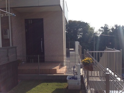 ウッドデッキを考えていたようですが、現在の土の水はけを考えるともっと清潔に使えるタイルデッキの方が宜しいのではと提案させて頂きました。