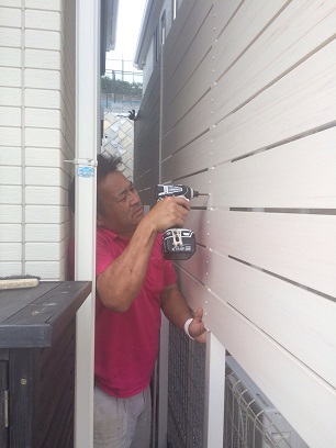 今回はオシャレな目隠しフェンスを施工中なので