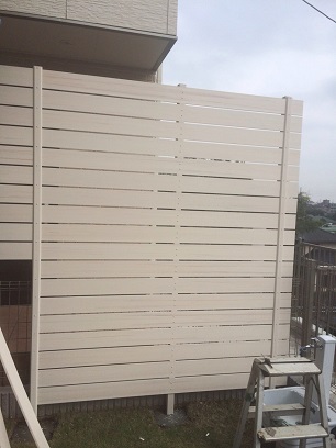 木目調目隠しフェンス施工中