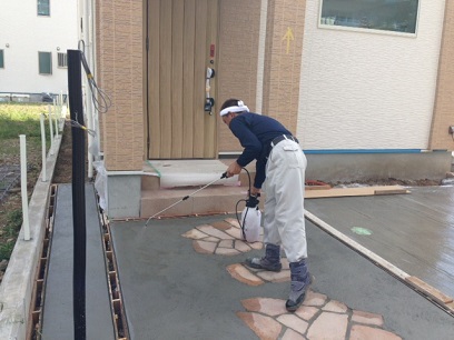 その後・・・コンクリートの表面に硬化遅延材(固まるの遅らせる液体)を