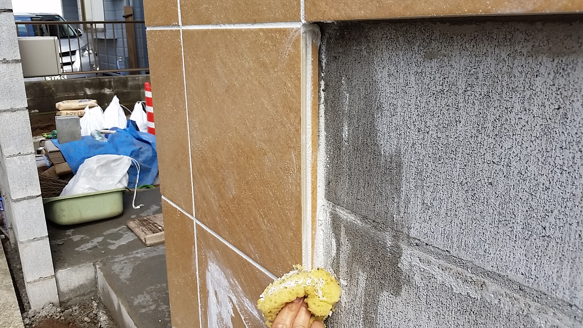 凹凸になっている小端の部分に貼られている細く加工されたタイルを見て下さい、へこんだ部分には、ボーダータイプのタイルが貼られるのでそんなに目立つほどではないのですが、こういった小端の仕上げが肝心なのであります。