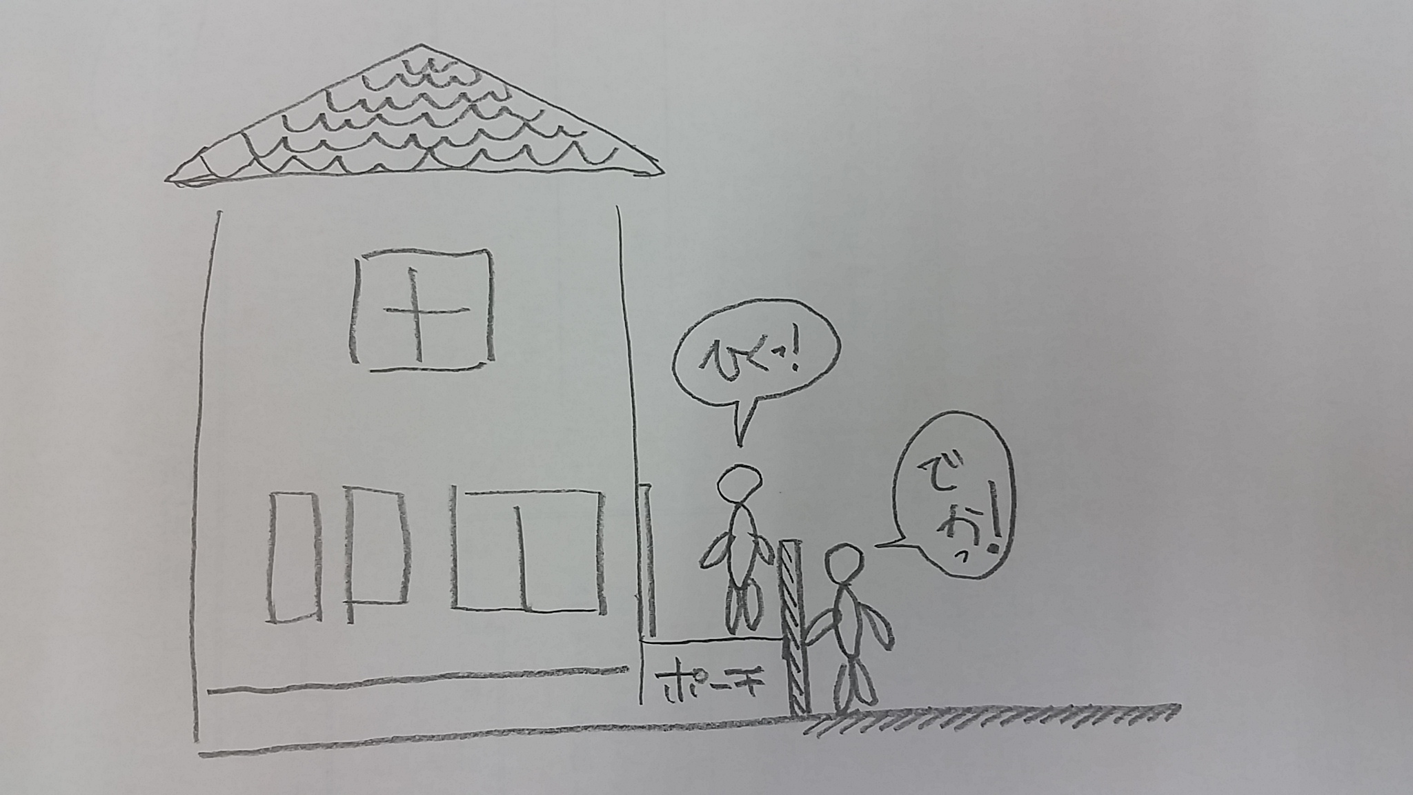 この位置に門塀を造作するときは、道路の高さと玄関ポーチの高さの両方を考え高さを決めないと下の絵のように高さがちぐはぐなんてことも!