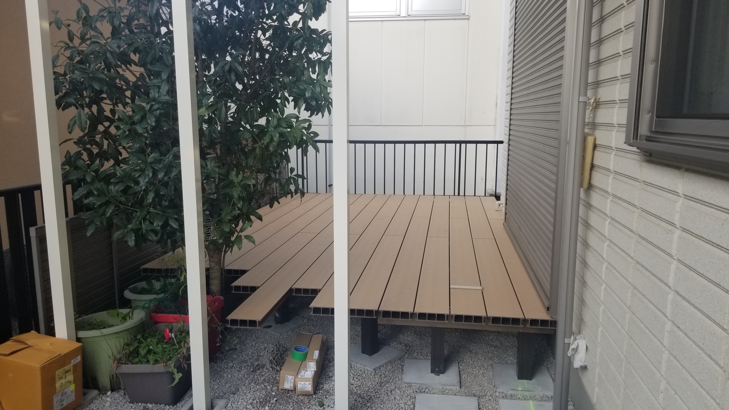樹脂のウッドデッキと目隠しフェンスの現場も形が見えてきました。