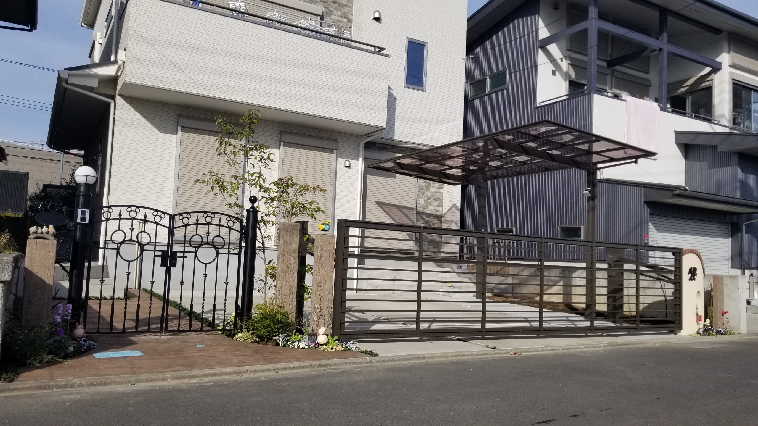 ビルトインガレージにシャッターがついてますが、門前も門扉でクローズされていました。