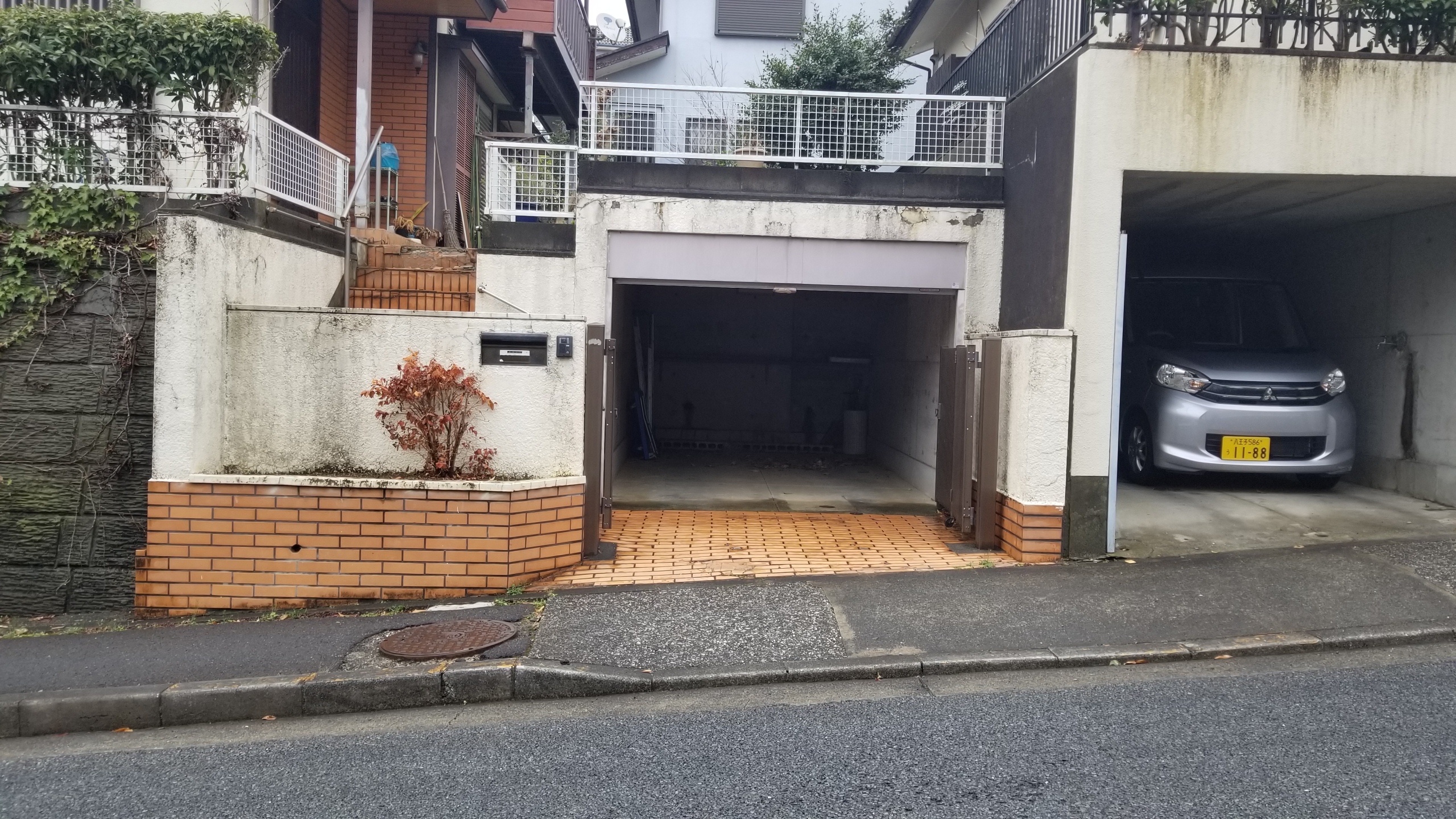 駐車スペース前をしっかり囲っているオーバードアは電動タイプですから、リモコン操作で開け閉めできます。