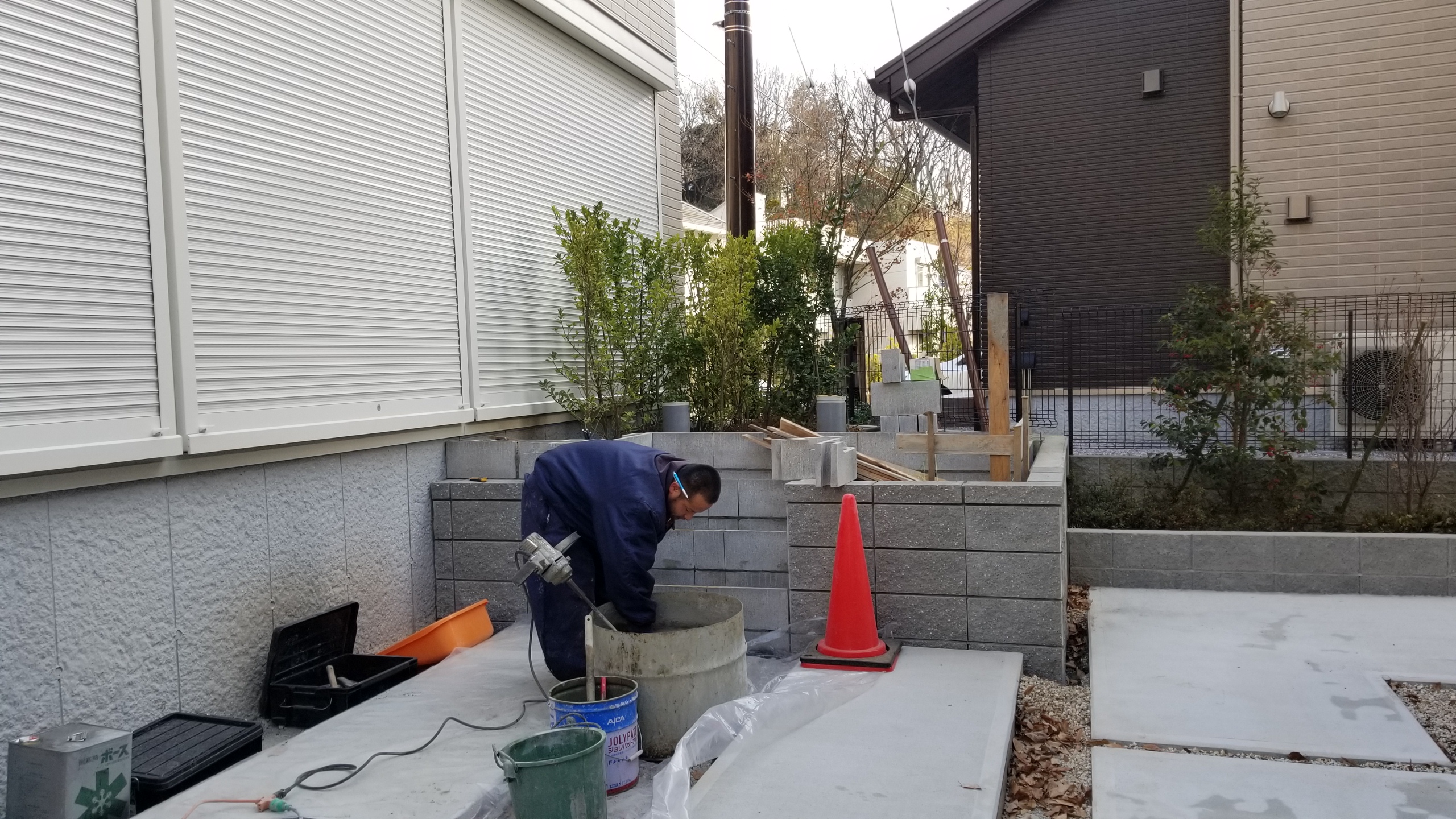 コンクリートの打設が終わるとタイル張りです。