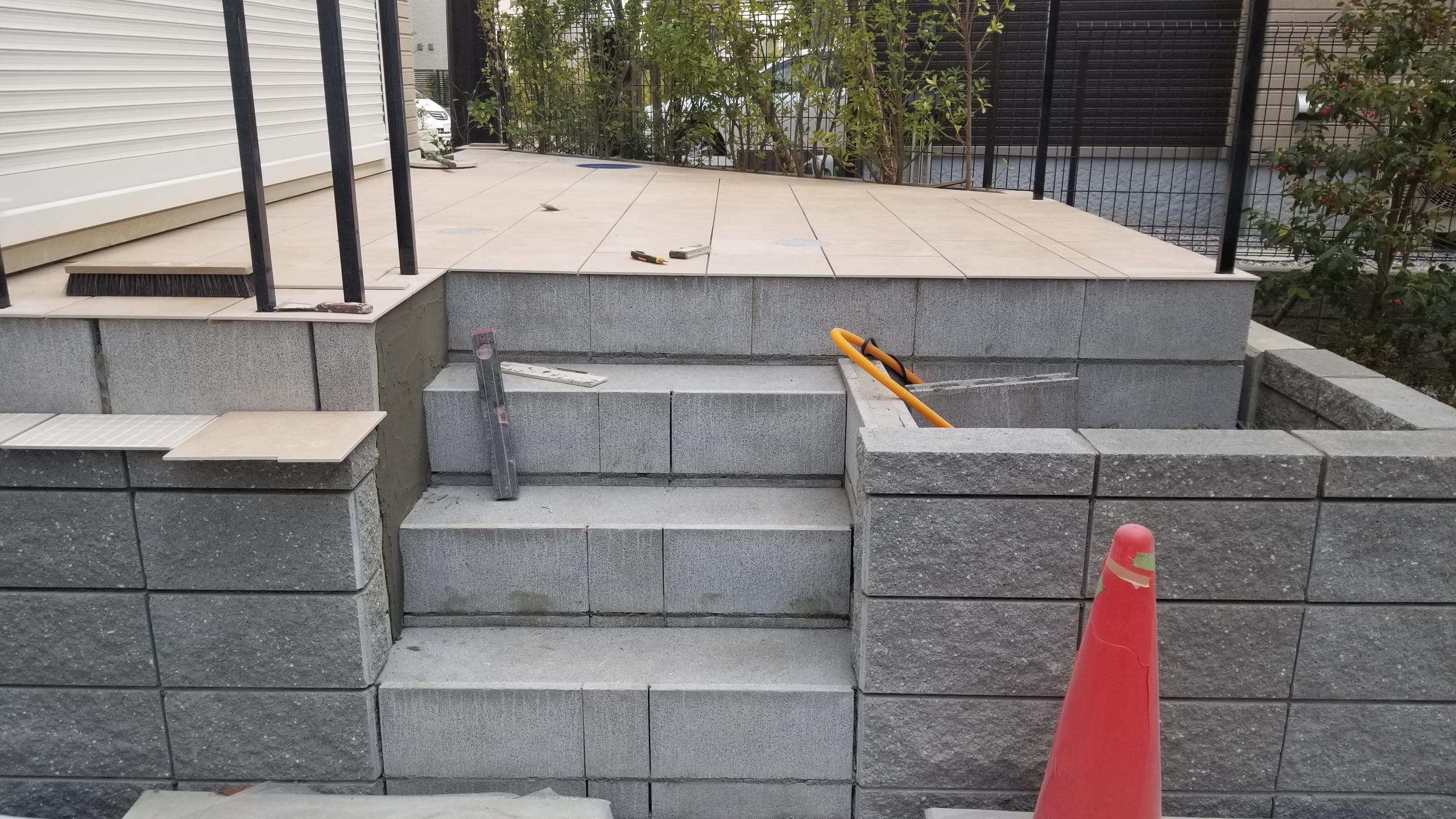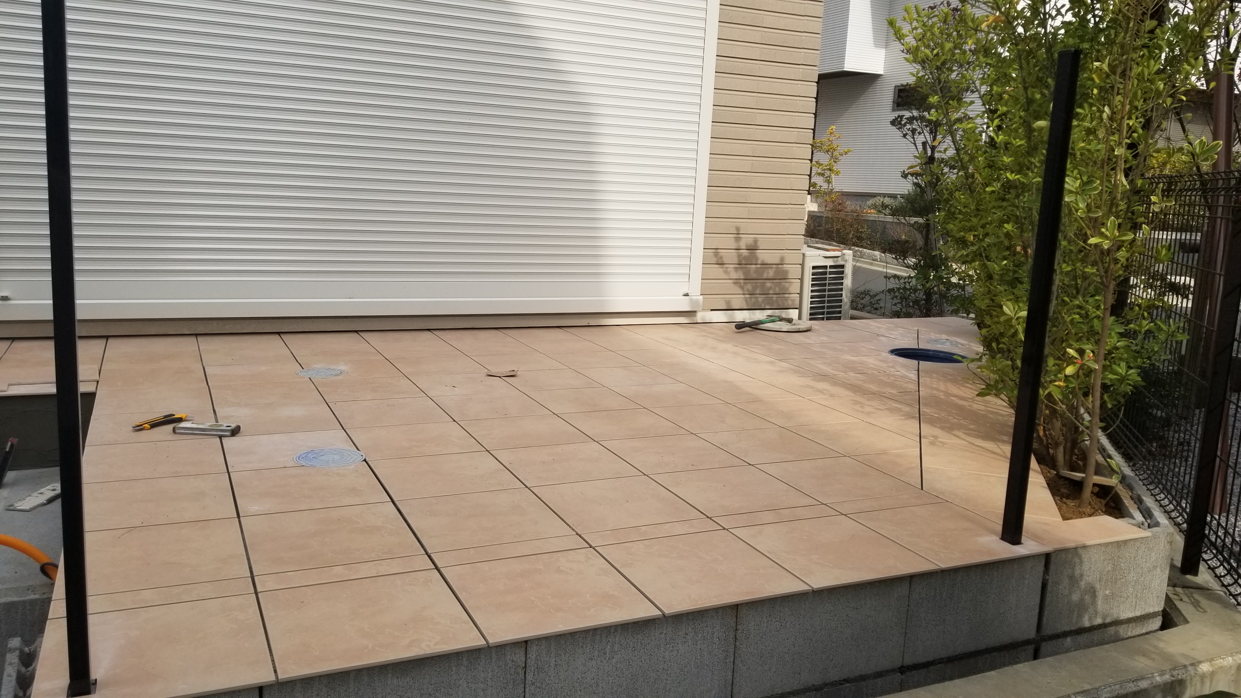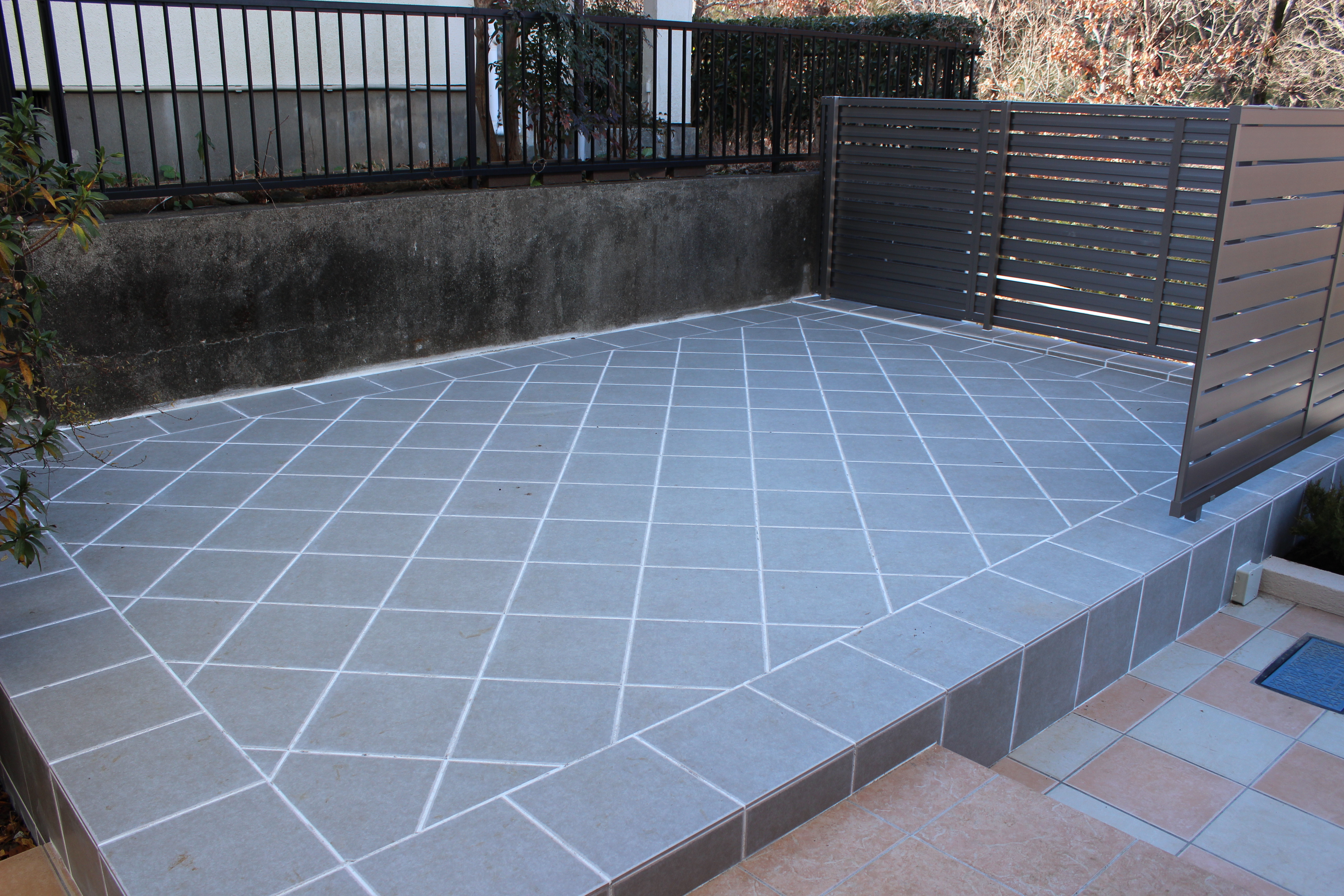 こちらは、出来立てホヤホヤのタイルテラスです。