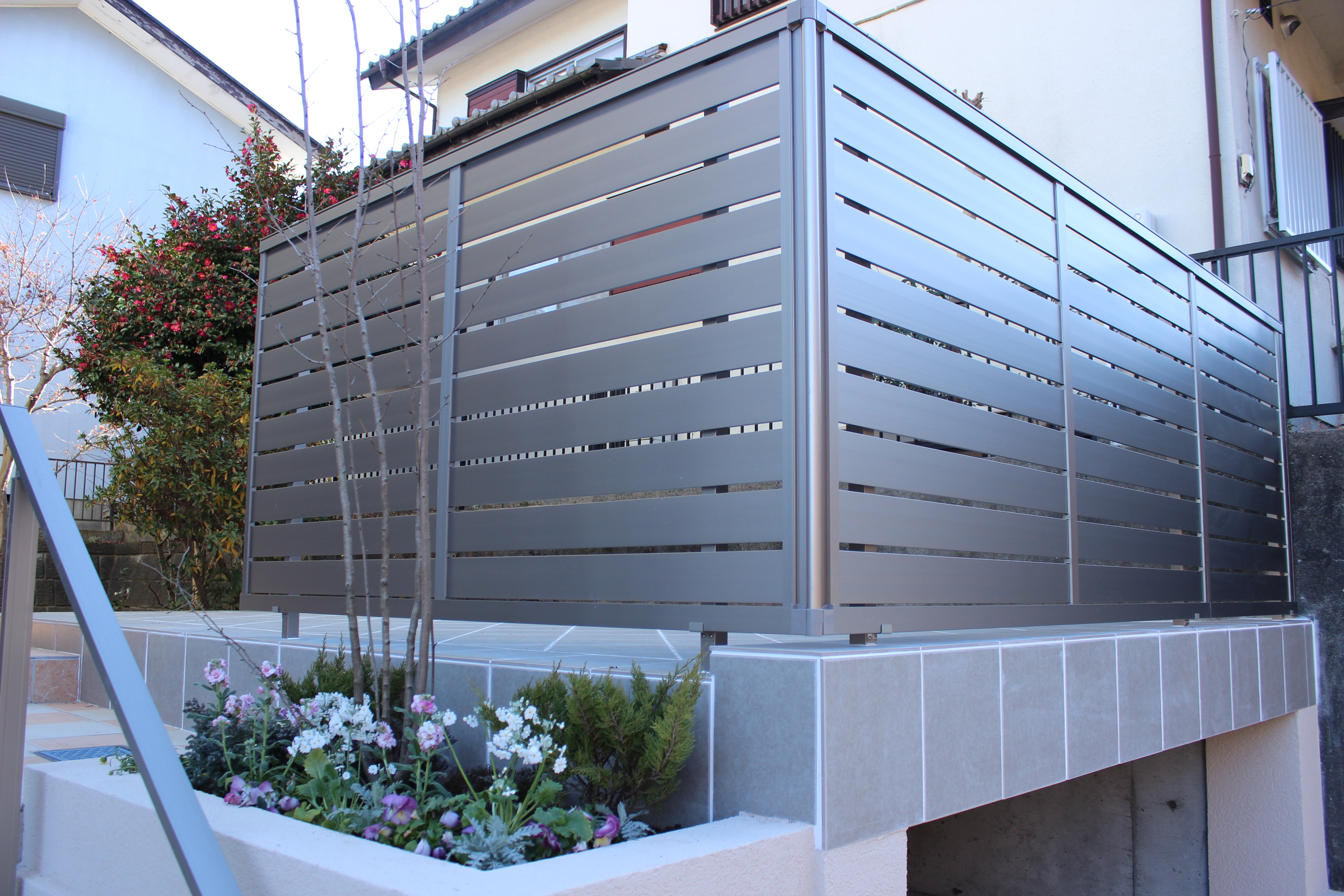 外からの視線をシャットアウトしてプライベートをしっかり保護したお庭に変身です。