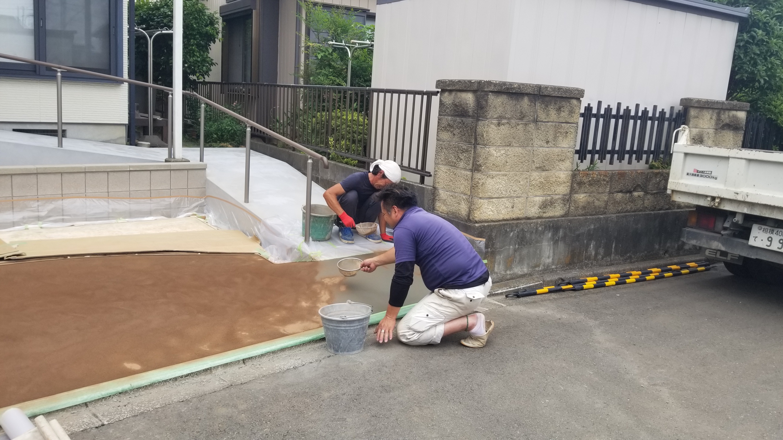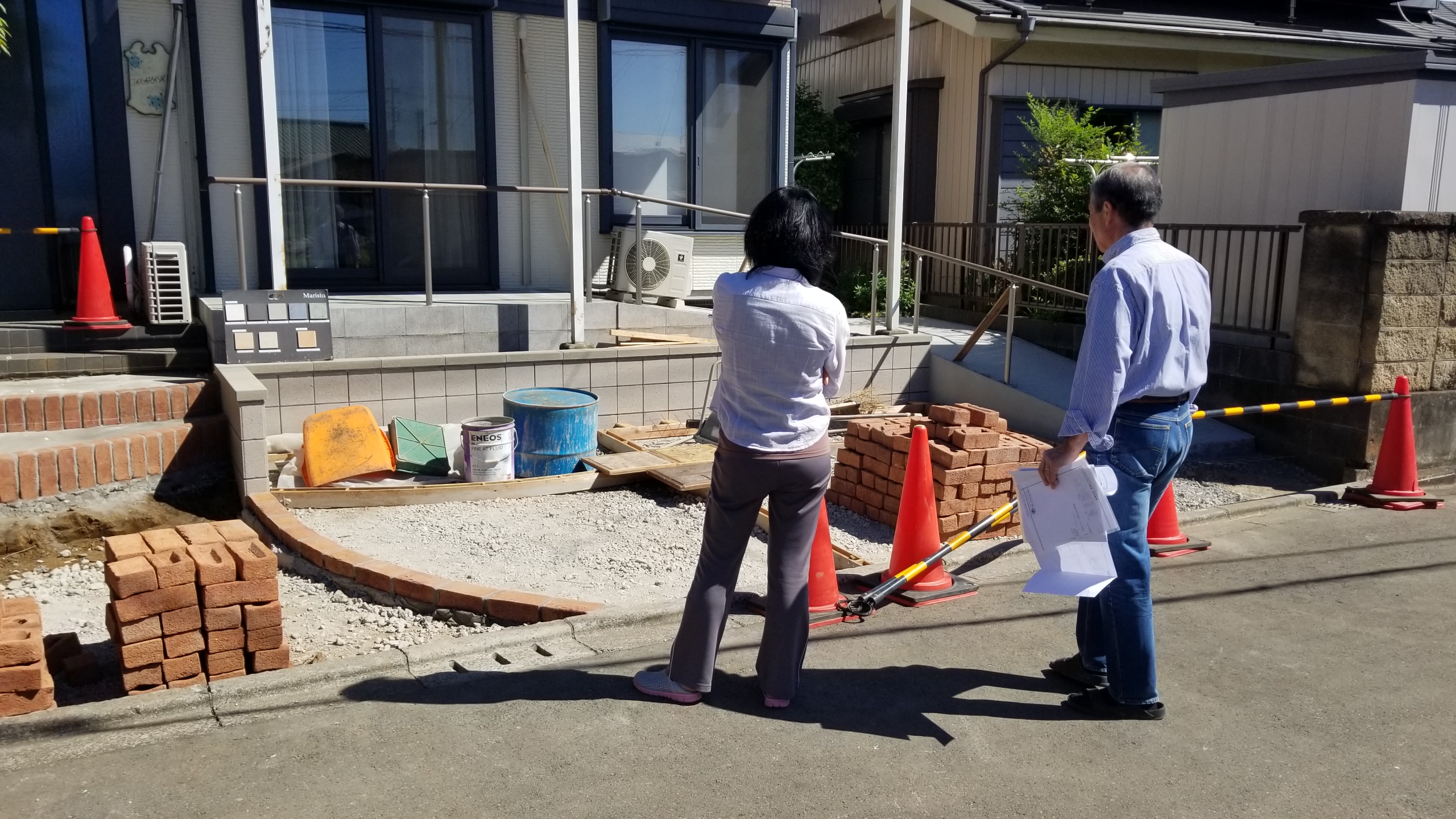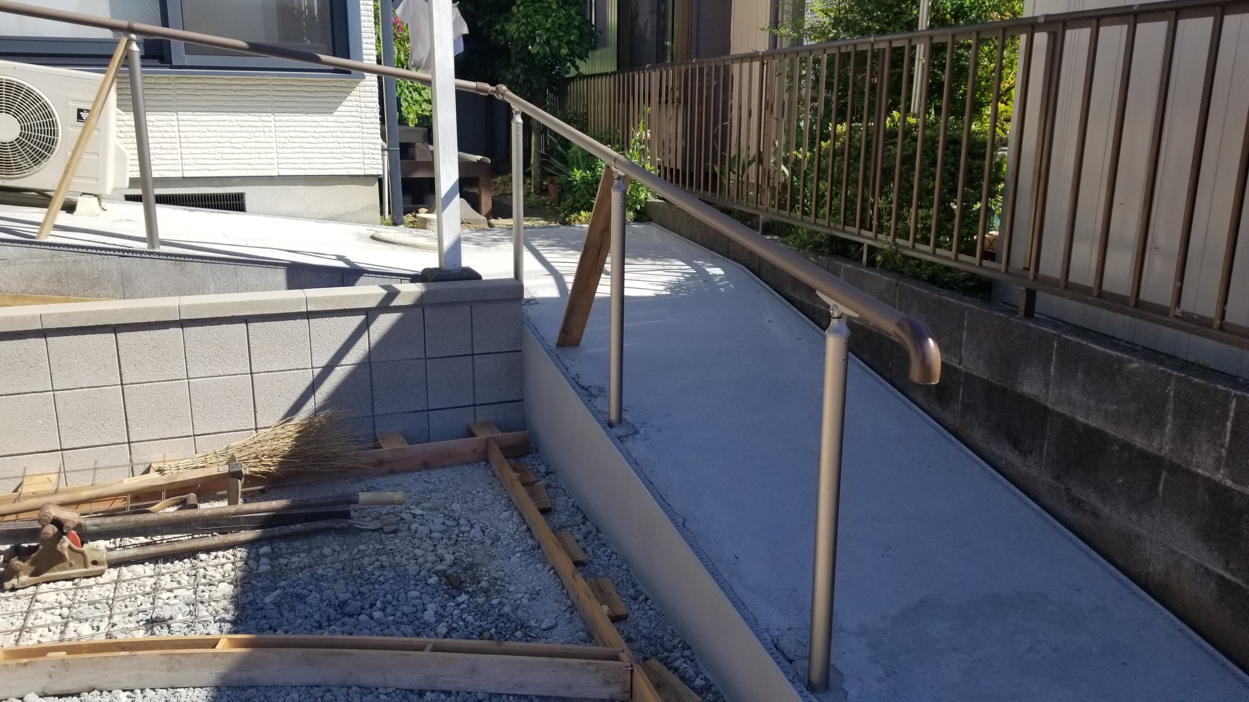 車椅子用スロープをメインとしたお庭のReガーデン工事中現場へ、お客様立ち合いに行ってまいりました。